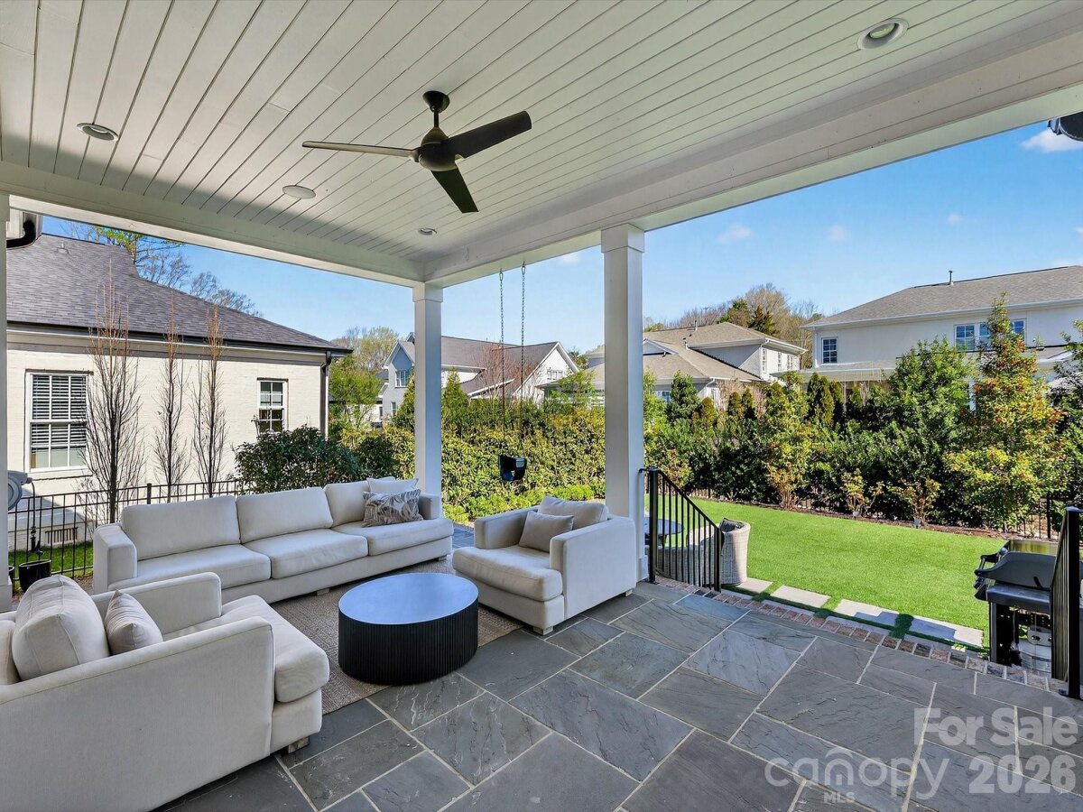 Elegant yet exceptionally Comfortable, this beautifully designed home showcases stunning designer details throughout. A Charming rocking-chair front porch welcomes you into this rare gem. The Chef's kitchen is a true centerpiece, featuring stainless steel appliances including a professional gas range, with hood, quartz countertops, custom tile and quartz backsplash, and stylish Visual Comfort Pendant and sconce lighting, and large walk-in pantry. The Kitchen flows effortlessly to the butler's pantry, perfectly positioned near the formal dining room. A gorgeous built-in banquette opens to the expansive great room with a pre-cast fireplace, creating the ideal space for everyday living and entertaining. Step outside to the spacious summer porch, perfect for outdoor dining, grilling and relaxing. The private backyard is beautifully finished with AstroTurf, fencing and landscape lighting, offering a low maintenance outdoor retreat. The main level guest suite with en-suite bath provides comfort and privacy, along with a convenient drop zone. Upstairs you'll find a luxurious primary retreat featuring an elegant spa-like bath and custom walk-in closet, plus generously sized secondary bedrooms with large closets, and an expansive bonus room. Ideally located near Southpark's premier shopping, dining, amenities, and top-rated schools, this meticulously maintained home also enjoys a quiet cul de-sac setting. A true hidden GEM-WELCOME HOME