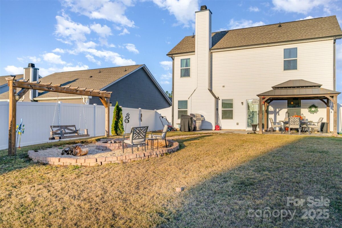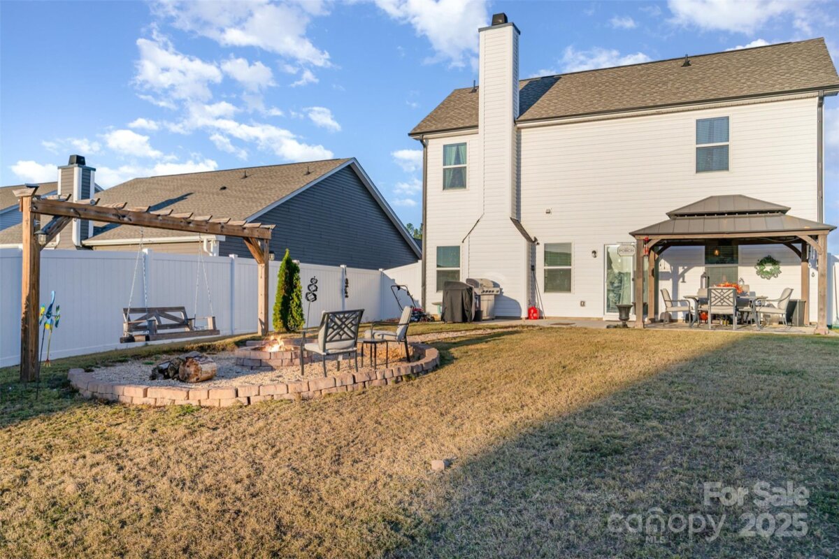 Welcome to this beautifully maintained 2022-built two-story home located in the desirable Forest Creek neighborhood of Stanfield. Offering 3 bedrooms, 2.5 baths, and thoughtful upgrades throughout, this home is perfect for anyone seeking comfort, style, and modern convenience in Western Stanly County. Step inside to an inviting main level featuring a cozy fireplace in the living room, a dedicated office space, and a stunning kitchen with quartz countertops, tile backsplash, generous pantry space, and all kitchen appliances included. The open layout makes it ideal for everyday living and entertaining. Upstairs, you’ll find a spacious loft area, three generous bedrooms, and a convenient laundry room. The primary suite offers a true retreat with a huge walk-in closet, double-sink vanity, and a beautifully tiled shower. Outside, enjoy a fully fenced backyard complete with a firepit, swing, and pergola, providing the perfect space for relaxing or hosting gatherings. Additional garage shelving adds great storage. Move-in ready and full of charm, this home has everything a family needs in a fantastic location. Make this your home just in time for Christmas—schedule your showing today!