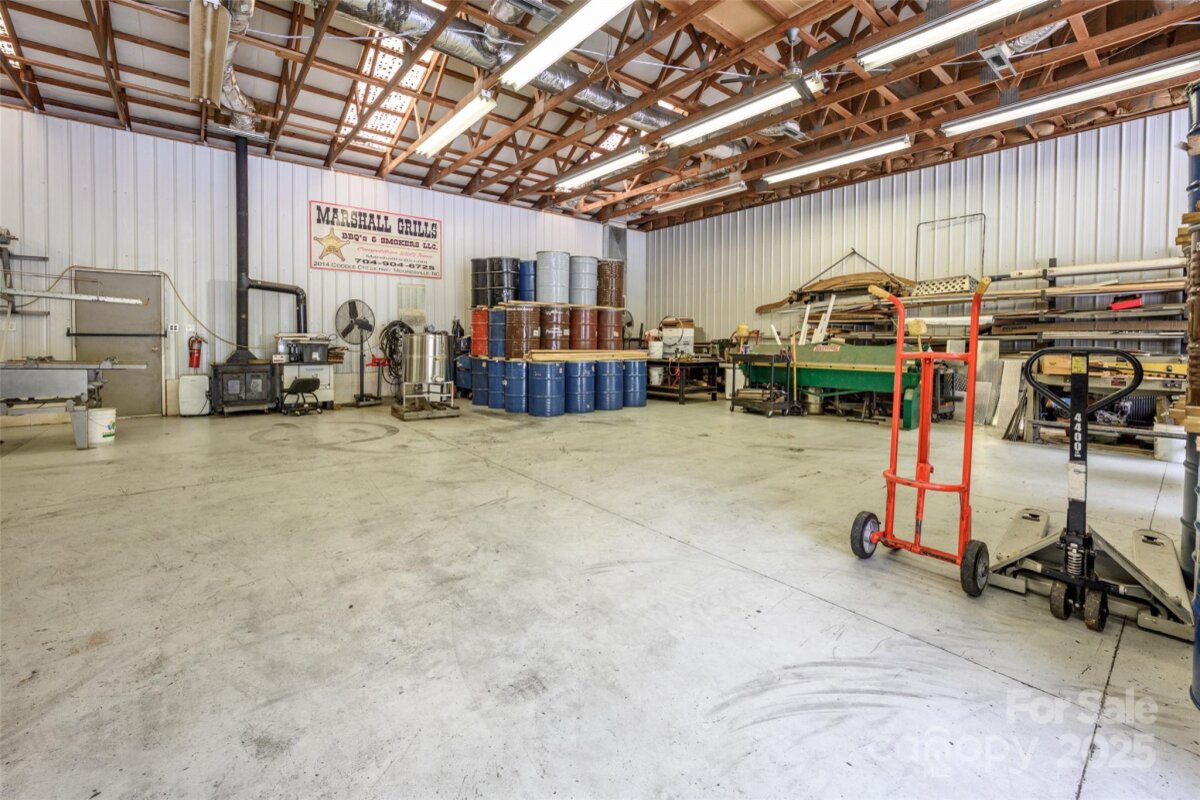 11+ acres with custom shop and home in a fabulous location on the south side of Mooresville, convenient to Davidson and Concord, but low Iredell Co. taxes and Mooresville school distict. Perfect for buyers looking for a family compound who need a shop, could be divided for multiple homes. Shop was designed to be used as a fabrication shop, but seller has used it for his honey business the past several years. Not your ordinary shop, fully insulated and climate controlled, with 6" thick epoxy coated interior free-formed 6k psi concrete slab and 6" thick outside slab, 200 amp 1ph service with multiple 50 amp welding outlets, secondary 100 amp sub panel, two 3.5 ton heat pumps w/ electric heat backup, 14' ceiling height inside, two 12' insulated bay doors, steel entry doors, loft area upstairs engineered for heavy weight storage capacity (designed to hold engines), industrial 6" gutters and downspouts, office and full bath w/ shower in shop, 50 gallon WH in shop, two wells on property (one for home, one for shop). Doublewide is 3 BR/2BA with new flooring and fresh paint, double carport, large back yard. Live in DW while you build your dream home or homes in this terrific location.