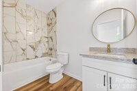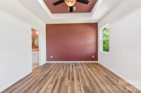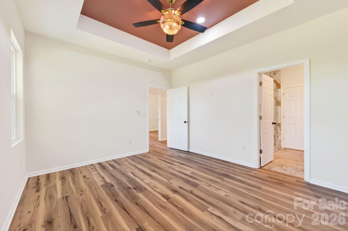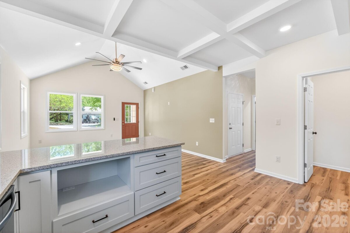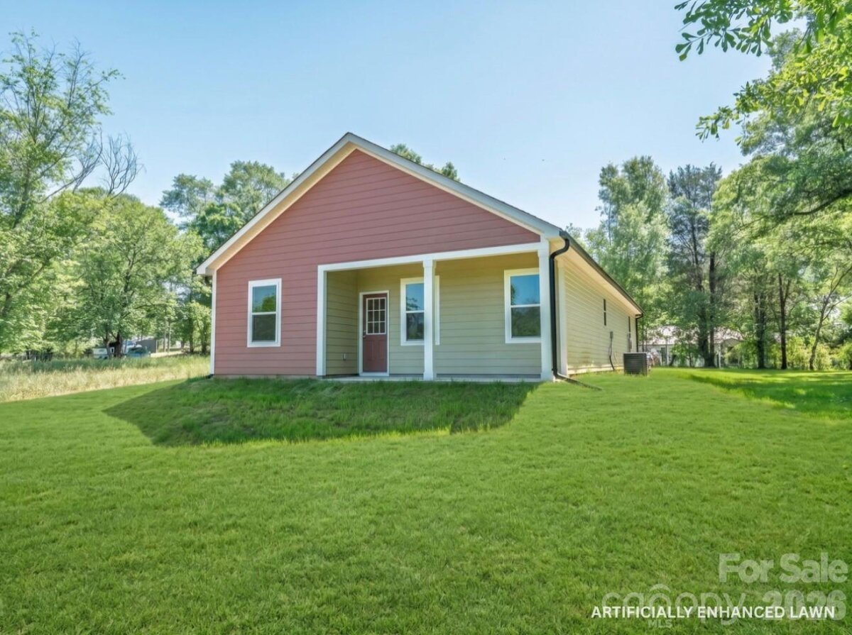 Thoughtfully designed 3-bedroom, 2-bath new construction home located in the city limits of Shelby. Offering the convenience of local shops, dining, and everyday amenities while still enjoying a spacious .70-acre lot with a 1-car garage. A covered front porch opens into a bright living area featuring cathedral ceilings, abundant natural light, and durable LVP flooring that flows seamlessly into the kitchen. The kitchen is both functional and stylish with stainless steel appliances, granite countertops, a peninsula with bar seating, vent hood, and a walk-in pantry. The primary suite provides a comfortable retreat with a tray ceiling, accent wall, and walk-in closet. The ensuite bath is finished with tile floors, dual granite vanities, and an oversized tiled shower with large rain head. Two additional bedrooms are generously sized and share a well-appointed hall bath with tile surround and granite counter vanity. Additional highlights include a covered back patio, dedicated laundry room, and a no-carpet design with LVP and tile throughout. The 1-car garage features an epoxy floor, and the spacious yard offers room to relax or entertain. Built with attention to detail and quality construction, this home includes a 10-year structural warranty. Enjoy quality new construction paired with the charm and convenience of the local amenities.