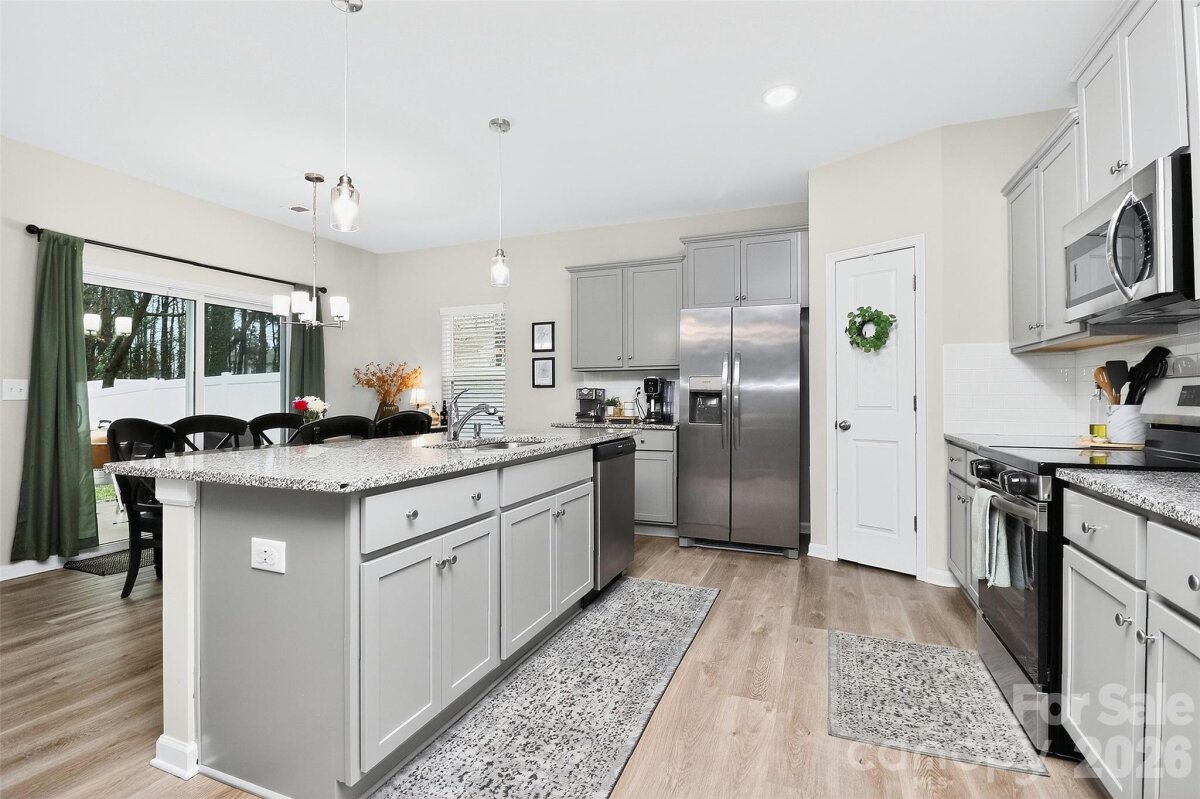 Welcome to McGee Place in Charlotte’s desirable 28216 zip code! Built in 2023, this move-in-ready two-story home offers 4 bedrooms, 2.5 baths, and approximately 2,100 heated square feet of well-designed living space. The open-concept main level features a spacious kitchen with a large island, walk-in pantry, and seamless flow into the dining and living areas—perfect for entertaining and everyday living. Step outside to enjoy the patio and fully fenced backyard, ideal for grilling, pets, or relaxing evenings at home. With neutral finishes, modern style, and an easy commute to Uptown Charlotte, this well-maintained home is a fantastic opportunity for buyers seeking a newer construction home with space and convenience in North Charlotte.