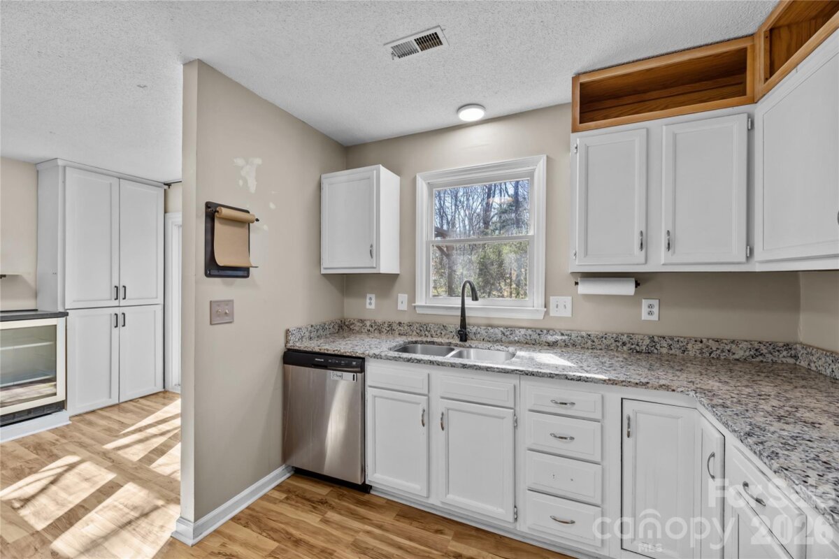 Enjoy easy one-level living in this inviting 3-bedroom, 2-bath ranch with a fenced backyard that backs to Mecklenburg County’s Teddington Neighborhood Park. Inside, the home features a nicely updated kitchen with granite countertops and stainless-steel appliances, along with a built-in dry bar with beverage refrigerator — a great space for entertaining or relaxing with friends. Step outside to the spacious deck overlooking the private backyard and the park beyond, creating a peaceful setting for outdoor dining, grilling, or simply unwinding at the end of the day. The home also features a wood-burning fireplace (sold as-is) and includes the washer and dryer for added convenience. The third bedroom is currently used as an office/studio and is missing closet doors but could easily be converted back to a traditional bedroom with the addition of closet doors and hardware. Property is being offered as a short sale and is subject to approval by the seller’s lender(s). The property is being sold as-is and seller will make no repairs. All terms, including but not limited to purchase price are subject to lender approval. Buyer should be prepared for potential additional time required for short sale approval.