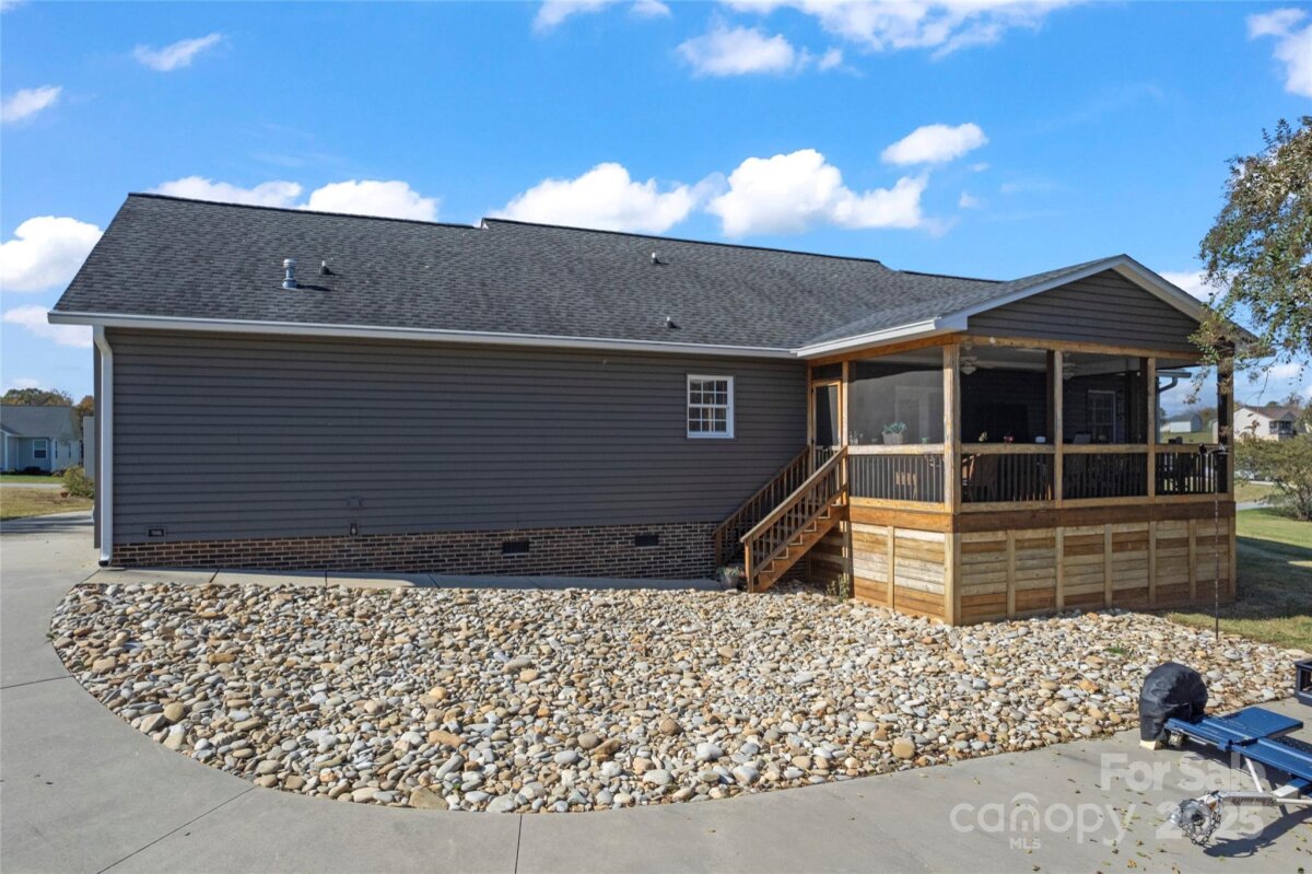 Discover this beautifully well maintained 3 bedroom / 2 full bath ranch home offering peaceful country living close to downtown Cleveland, NC — while still within less than an hour to Charlotte. This move-in ready property features hardwood flooring, brand new siding, a screened & covered back deck overlooking a spacious yard, & a Generac whole house generator providing year-round peace of mind. Situated on nearly 3/4 of an acre PLUS wide-open city-owned land next door — this home feels significantly larger, more private, and more open. No HOA means extra freedom to enjoy your land, store your toys, and personalize your outdoor space exactly how you like it. The detached 3 + car garage workshop is ideal for cars, woodworking, hobbies, storage, projects, or whatever you desire. Whether this will be your first or forever home — a split floor plan is a dream come true for all. Experience that perfect blend of small-town comfort while remaining close enough to those big city amenities like restaurants, commuting, entertainment & the growing surrounding Charlotte area when the urge hits.