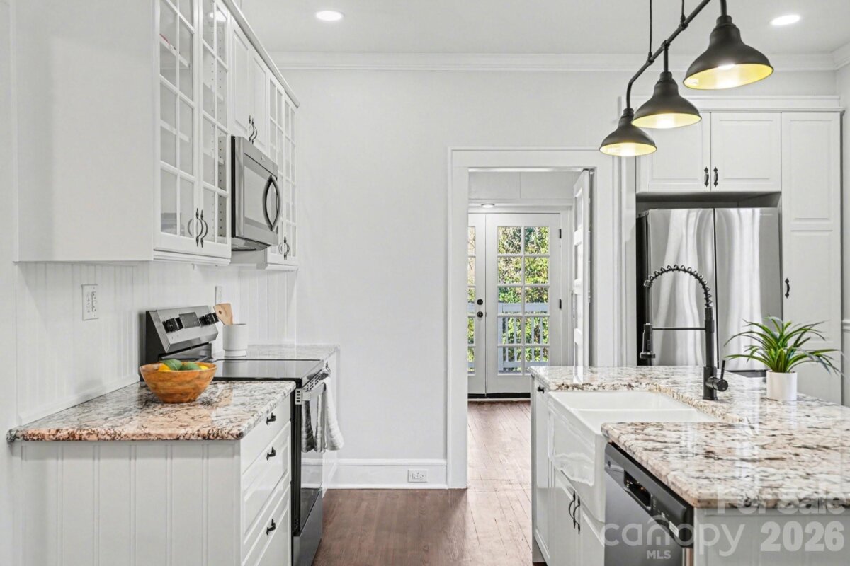 Step into a beautifully restored piece of Monroe history. This fully renovated bungalow blends timeless character with modern convenience, all located in the Historic District of Monroe. This 3-bedroom, 2-bathroom home has been thoughtfully redesigned with a more functional layout, including a reimagined kitchen positioned for a traditional and open flow, perfect for everyday living and entertaining. The kitchen features white cabinetry, granite countertops, stainless steel appliances, and modern lighting, while still preserving the charm that makes historic homes so special. The primary suite has been completely reconfigured, now offering a spa-like bathroom with dual vanity and a walk-in tiled shower, creating a true retreat within the home. Throughout the home you'll find beautiful hardwood floors, updated finishes, and abundant natural light that highlight the craftsmanship of this early 20th century property. Outdoor living is just as inviting. Relax on the large covered front porch, unwind on the screened-in back porch, or enjoy the newly added balcony overlooking the private .29-acre lot, offering a peaceful backyard setting rarely found this close to downtown Monroe. Additional features include a partial unfinished basement ideal for storage, new gutters, and thoughtful updates that make this historic home move-in ready while maintaining its original character. Located just minutes from Downtown Monroe shops, restaurants, and local events, this is a rare opportunity to own a fully renovated historic home with modern comforts in one of the area's most charming neighborhoods.