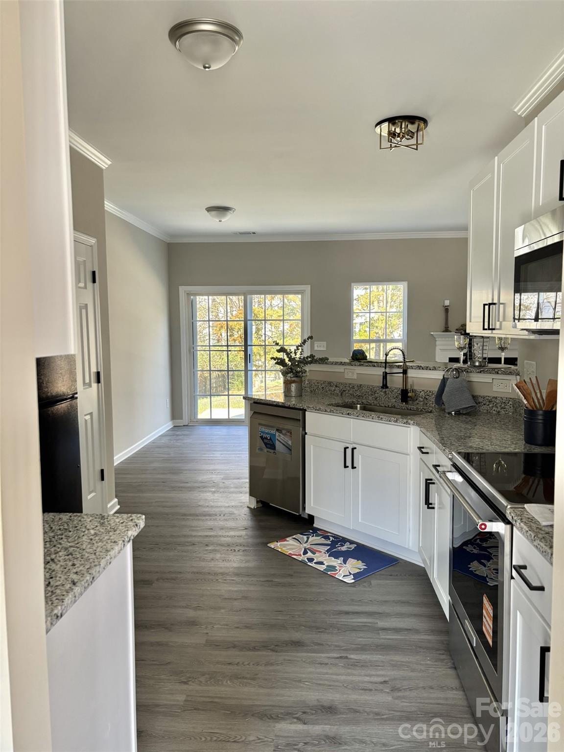 " A BRAND NEW KITCHEN ". Rehab Includes NEW: Kitchen Cabinets with the Soft Close Feature, SS Appliances including a Kitchen Aid Range, 9" Undermount Sink, Granite Countertops with overhang sitting area, Upgraded Luxury Vinyl Plank Flooring, Carpet & Pad, Vanities, Designer Faucets, Mirrors, Ceiling Fan, Lighting, Door Knobs, Hinges, etc. Too Much to List. Fresh Paint Inside. Exterior Shutters and Front Door Repainted. Fresh Pressure Washed Exterior. Fenced in Back Yard. Pet Friendly. Flat Lot. Award Winning Schools. Move In Ready..!! With many New components this should be somewhat maintenance free.