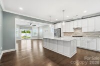 Discover comfort, convenience, and easy living in this inviting 3-bedroom, 3-bath home offering 2,675 sqft of heated living space within a beautifully maintained 55+ community just minutes from Main Street Fort Mill. Thoughtfully designed and full of natural light, this home brings together modern finishes with a warm, welcoming feel. As you step inside, you'll notice the 9' ceilings, detailed crown molding, and oversized baseboards that add character and charm. The open living and dining spaces flow seamlessly, making everyday living and hosting loved ones feel effortless and cozy. The heart of the home is the spacious kitchen, featuring granite countertops, an oversized island, and a quality appliance package—perfect for cooking, gathering, or simply enjoying morning coffee. Granite continues in all bathrooms and hardwood floor throughout primary living areas for a cohesive and polished look. The main-floor primary bedroom offers a peaceful retreat with its own beautifully finished bathroom, complete with a frameless glass shower, tile to the ceiling, and a comfortable built-in bench—an ideal place to relax and unwind with lots of natural light. Step outside to the covered rear porch, where you can enjoy quiet mornings, afternoon breezes, or evenings with friends—no matter the season. With a fully maintained yard and in-ground irrigation, you’ll have more time to enjoy the things you love.