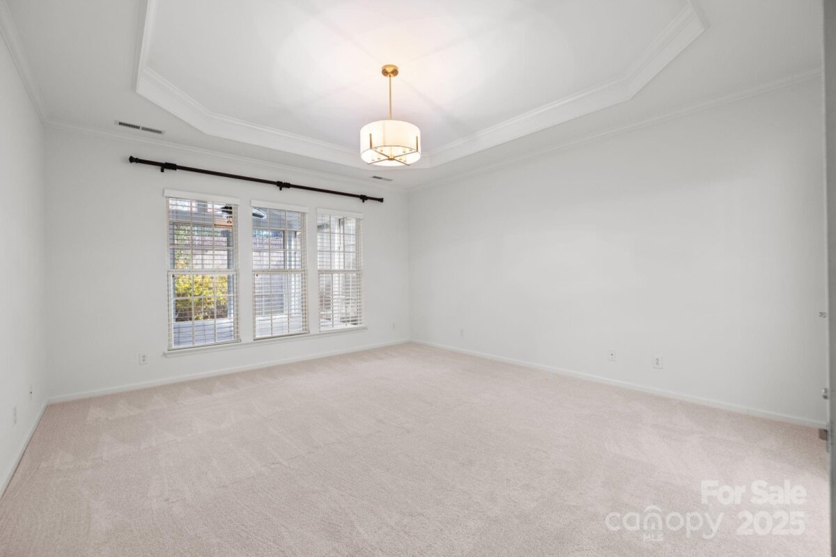 Welcome to this move-in-ready home in an active adult community with resort-style amenities. This single-level residence offers an open-concept layout ideal for everyday living and entertaining. The formal dining room and living room (or office) connect to a spacious kitchen that opens to the family room, breakfast area, and sunroom, creating a bright and functional space. The kitchen includes granite countertops, stainless steel appliances, ample cabinets, and a large walk-in pantry. A four-season room adjoins the sunroom and overlooks the private backyard. The fenced patio includes a rollout awning, and the landscaped grounds are designed for year-round enjoyment. The primary suite features dual vanities, a walk-in closet, and full bath. Two additional bedrooms each include an en-suite bath for privacy. Updates include a new roof, air-conditioning, interior paint, and new carpet in the primary bedroom.