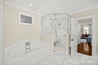 LUXURY LIVING IN MYERS PARK! This custom residence, designed by Don Duffy and built by Gerrard Builders, is a seamless blend of sophistication and modern luxury. Sun-filled interiors and soaring ceilings create an airy, refined backdrop, while a thoughtfully designed floorplan offers effortless flow for both entertaining and everyday living. At the heart of the home, a showpiece chef’s kitchen features an oversized island, walk-in pantry, and opens seamlessly to the breakfast area, bar, and fireside family room. The main level also offers a private guest suite with full bath, an inviting living room, formal dining room, and powder room. Upstairs, the expansive primary suite is a true retreat, complete with a spa-like bath with soaking tub, oversized shower, and generous walk-in closet. Three additional bedrooms, two full baths, a dedicated office, and laundry complete the second level. The third floor offers a versatile sixth bedroom or bonus space with a full bath. Outdoor living is equally impressive, with a covered porch featuring heaters and a fireplace overlooking a beautifully designed pool with an electric cover. A terraced yard with a ramp for easy access and raised garden beds adds both function and charm, all surrounded by lush landscaping. Additional highlights include a two-car garage, fenced backyard, abundant walk-out attic storage, and a prime location just minutes from the shops and restaurants of Myers Park, with easy access to Uptown.