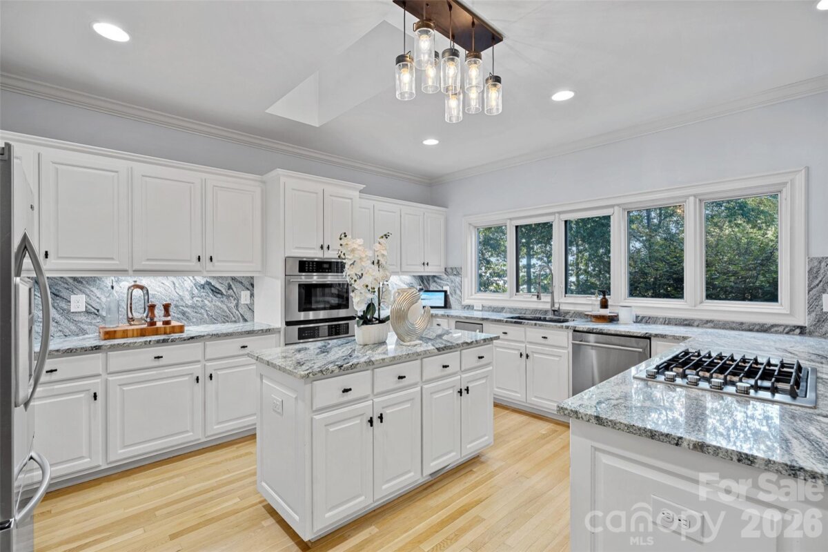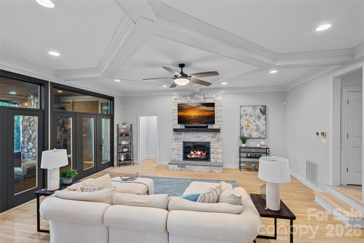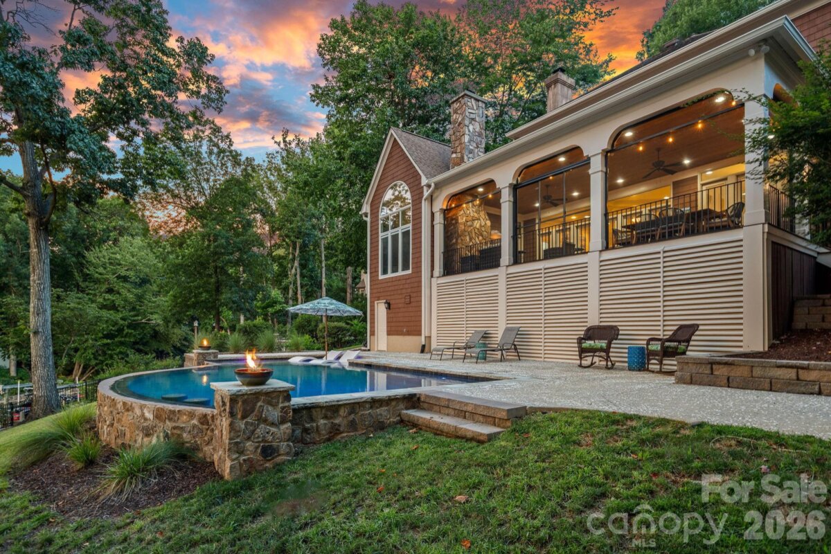 Big lot, big views, move-in ready! Incredible value at $2.495M in Cornelius with sweeping long-range main channel views of Lake Norman, this exceptional waterfront retreat rests on nearly an acre and offers an updated, move-in ready residence designed for effortless living and entertaining. The cozy yet open layout is filled with natural light, featuring walls of windows and glass doors that open to a lakeside screened terrace, a spacious chef’s kitchen with eat-in breakfast area, and an oversized primary suite with spa bath and large walk-in closet on the main level. Upstairs offers three generously sized bedrooms, a large bonus area, and dual staircases for flexible living. The expansive backyard oasis showcases a new saltwater pool (2024), lakeside firepit, and private dock with 7,000 lb boat lift, making this a rare opportunity to own a large waterfront lot with big views and exceptional outdoor living in one of Cornelius’ most sought-after lakefront locations.