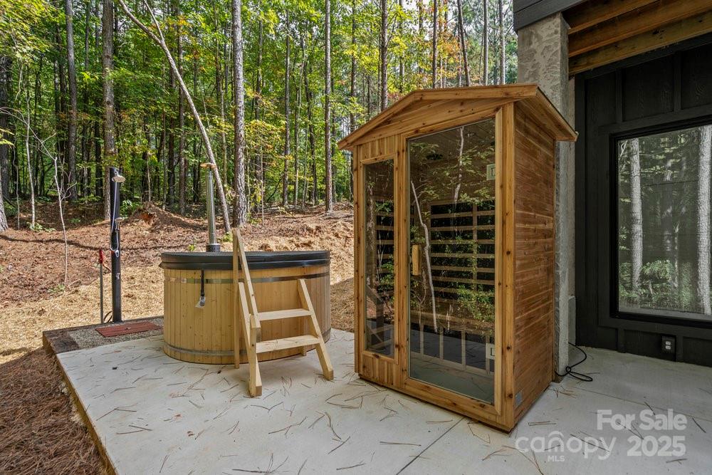 A Bespoke Modern Sanctuary: New Construction Luxury in Golden Creek, Union Mills, NC Welcome to your ultimate mountain retreat! Nestled on a private 1.67-acre lot in the exclusive Golden Creek Subdivision—a neighborhood dedicated entirely to contemporary design—this brand-new, 3-bedroom, 2.5-bath home offers an unparalleled blend of modern luxury and natural serenity. Unmatched Design & Wellness Amenities: Experience seamless indoor/outdoor living with expansive floor-to-ceiling windows and soaring vaulted ceilings that frame the lush, private forest views. The central living area features a stylish stone fireplace and smart recessed lighting with nightlight accents, creating instant ambiance. This is a turn-key escape designed for total rejuvenation. Exceptional Features Included: The home is an oasis of wellness, featuring an exterior Sauna and Hot Tub for year-round enjoyment, complemented by a convenient Outdoor Shower and a dedicated Pet Spa! The Ultimate Outdoor Entertainer: Enjoy the seamless flow from the sleek, modern kitchen to the incredible outdoor spaces. The home boasts over 1,000sf of phenomenal combination of covered and uncovered deck areas, finished with durable Trex Decking and framed by contemporary cable railing. The covered space includes a fully equipped Outdoor Kitchen with a BBQ and Beverage Bar—ideal for entertaining while overlooking your private, wooded acreage. Built for Durability & Convenience: This home is completely turn-key and low-maintenance, featuring a robust metal roof and includes ALL appliances shown (Washer/Dryer, BBQ, Beverage Bar, Sauna, and Hot Tub). Perfect as a luxurious primary residence, a fantastic family getaway, or an immediate, high-end short-term rental investment. Schedule your private showing today and step into your brand-new modern sanctuary!