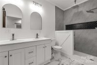 Fantastic Fort Mill location on a large corner lot! You will stand on your driveway and see Walter Elisha Park, the perfect spot to play, enjoy a picnic or listen to concerts in the park. Centrally located 5 minutes from I-77 means easy highway access. No HOA so bring your toys! The 539 square foot garage with electricity is outfitted with a workbench with storage, storeroom and a large driveway to accomodate 6+ cars. You can use the garage for your E Bay business storage, work on your cars or enjoy your hobby of woodworking! New garage door and opener installed. Step inside past your rocking chair front porch, and pass through the beautiful arched entryway to over 2200 feet of heated living areas with main level 10 foot ceilings making it feel even more spacious! With a wide open kitchen to great room concept, there is plenty of room to entertain for the holidays or family gatherings! This thoughtfully designed home has 4 bedrooms and 3 full bathrooms, featuring a main level primary bedroom with a very spacious walk in closet, coffered ceilings and a gorgeous NEW primary ensuite bathroom with tiled shower, linen closet and dual rain-style shower heads. The beautiful kitchen features a wine bar, 42 inch cabinets for plenty of storage, quartzite countertops, a 6 foot island with bar top and under cabinet storage, and Whirlpool appliances with a steam cleaning oven. Although your main living area is all downstairs, take a trip upstairs for a bonus area of 23 x 20 with it's own walk in closet, new carpet and a NEW bath with tiled walls and a rain-style shower head as well. No shortcuts here! Loft area at top of stairs can have multiple uses as well, for a den. playroom or sewing/craft room. Lots of flexibility means options to suit your lifestyle. No matter your profession, lifestyle or family status, this home features all you need to live the life you have been waiting for in the perfect location, Easy commute to Charlotte, the airport, Carowinds or the White Water Center as well.