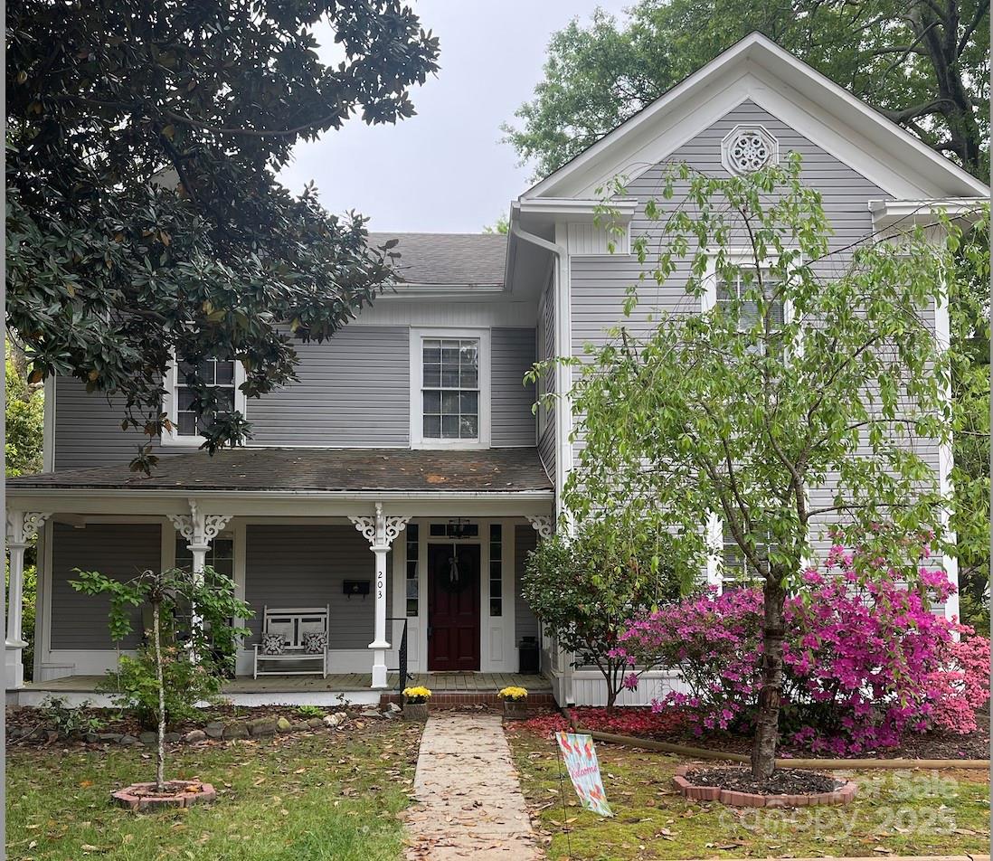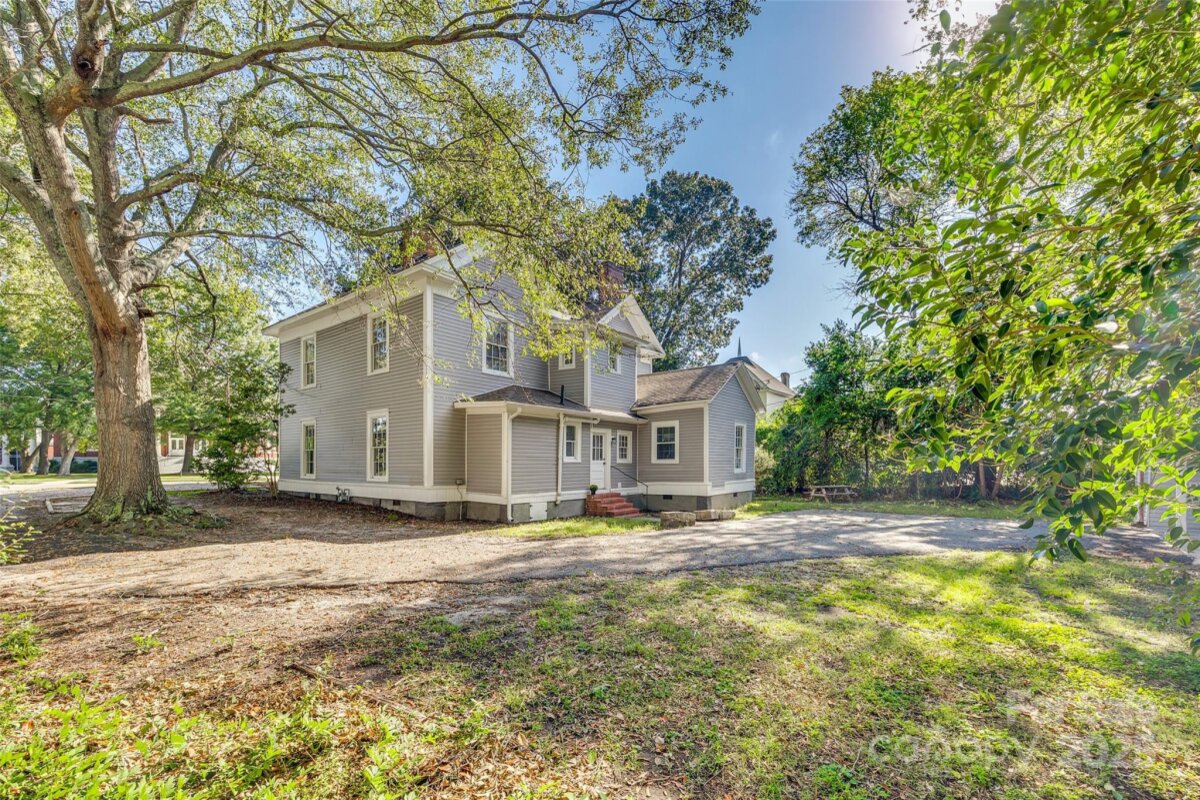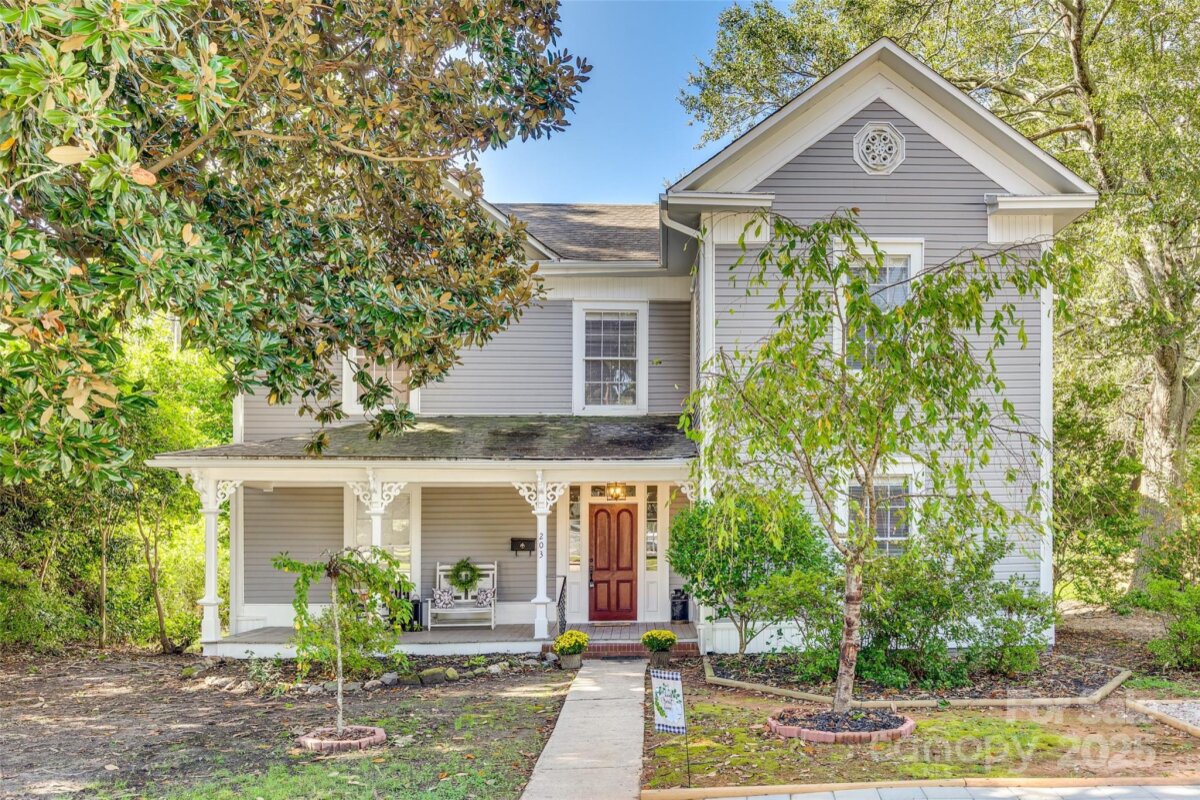 203 Kings Mountain is ready to captivate those who appreciate the glamour of yesteryear & appreciate its grandeur, restoration & exceptional livability. This 1880's piece of history exudes southern charm & hospitality. Inside you will love the high ceilings, orig. heart of pine wood floors & the spacious foyer w/the original wooden staircase. There are 7 FP's but 5 have been capped off. The LR & DR have gas logs. The kitchen boasts a walk-in pantry, stainless steel appliances & lots of windows. Flexible dining space off kitchen—ideal as dining, den, or extra living area. The Primary Suite is on the main floor. The bath has double vanities & a tub/shower. Upstairs there are 3 BRs & a full BA w/claw foot tub. Outside you will find a det. 2 car carport & a storage building being sold "as is". Huge trees surround this lovely home w/ the focal point being the 100+ yr old magnolia tree in the front yard. You will love the prime in-town location, close to elementary school, restaurants, shops, & parks. Don't miss the opportunity to own this historical home in Downtown Clover.