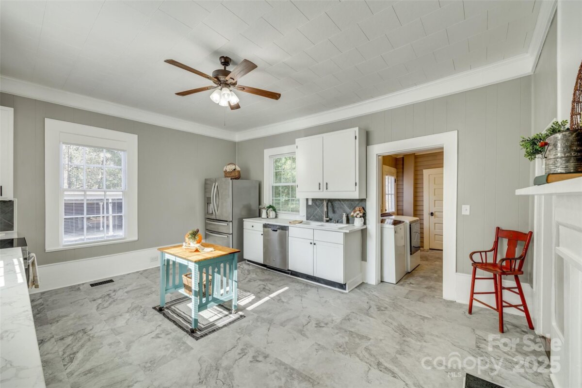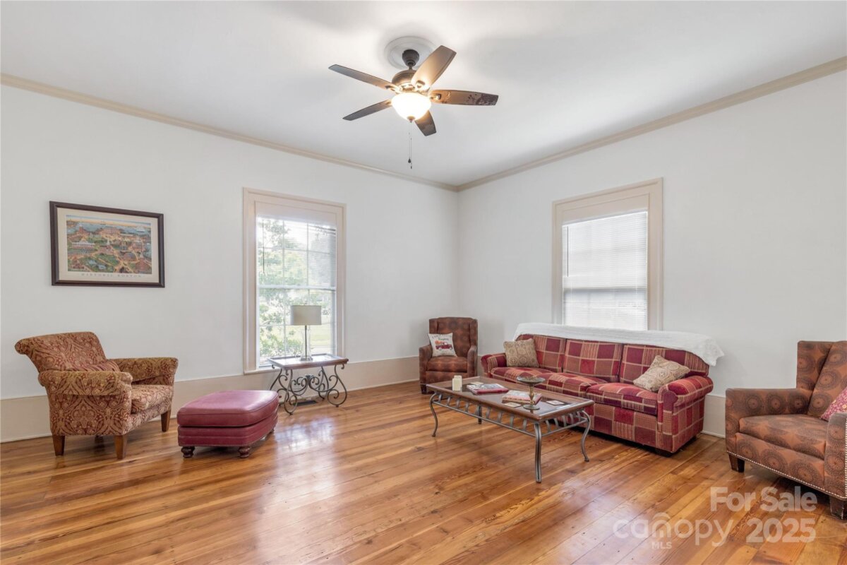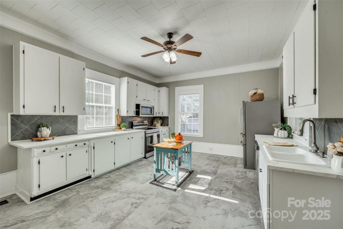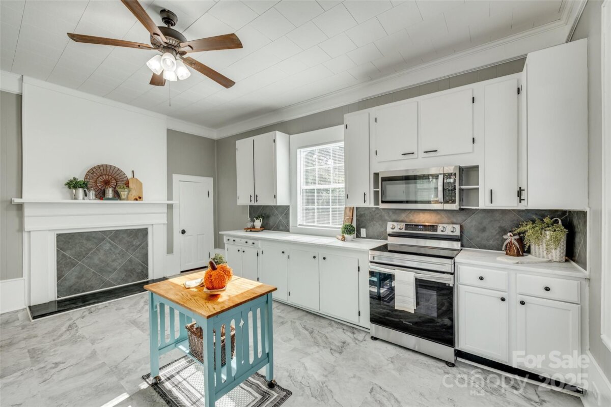 203 Kings Mountain is ready to captivate those who appreciate the glamour of yesteryear & appreciate its grandeur, restoration & exceptional livability. This 1880's piece of history exudes southern charm & hospitality. Inside you will love the high ceilings, orig. heart of pine wood floors & the spacious foyer w/the original wooden staircase. There are 7 FP's but 5 have been capped off. The LR & DR have gas logs. The kitchen boasts a walk-in pantry, stainless steel appliances & lots of windows. Flexible dining space off kitchen—ideal as dining, den, or extra living area. The Primary Suite is on the main floor. The bath has double vanities & a tub/shower. Upstairs there are 3 BRs & a full BA w/claw foot tub. Outside you will find a det. 2 car carport & a storage building being sold "as is". Huge trees surround this lovely home w/ the focal point being the 100+ yr old magnolia tree in the front yard. You will love the prime in-town location, close to elementary school, restaurants, shops, & parks. Don't miss the opportunity to own this historical home in Downtown Clover.