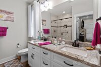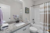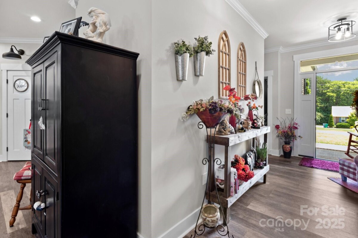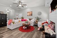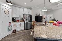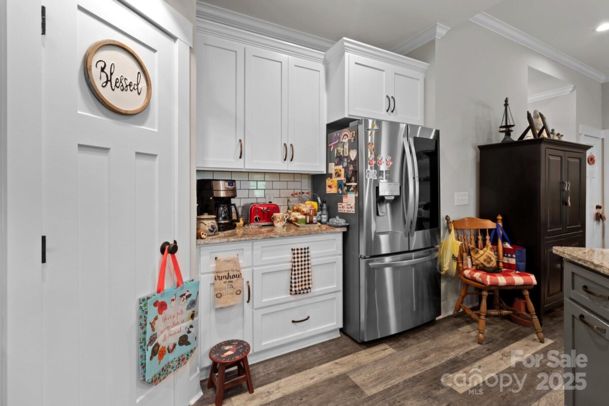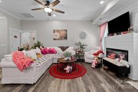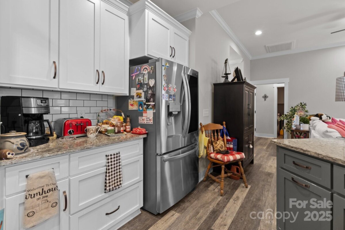 Located in a desirable community, 203 Poplins Grove Church road offers a custom split floor plan home, constructed in 2020, with numerous upscale features. These include coffered checkerboard ceilings in the primary bedroom wainscoting in the dining area, oversized crown moldings, chair rail, custom lighting, granite countertops in the kitchen (accompanied by a beautiful tile backsplash) and both bathrooms. Primary bathroom also features a large walk-in tile shower, as well as a spacious walk-in closet. The interior features LVP flooring throughout, complemented with carpet in the two spare bedrooms. A beautiful shiplap electric fireplace adorns the living room, while a charming fenced/gated patio area in the backyard provides an ideal setting perfect for entertaining or unwinding.