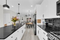 Nearly new 3 bed, 2 bath, 1532sf home within walking distance of charming Downtown Belmont. Single story open floor plan with gas fireplace centered living and large naturally lit kitchen with stainless appliances, pot filler above gas stove, granite counters including island and walk-in pantry. Oversized primary suite features room for sitting area, bath with dual sinks, soaking tub, tile shower and walk-in closet with custom wood shelving. Private yard with patio and fire pit backs to nature. Right next to the shops and restaurants of adorable downtown Belmont!