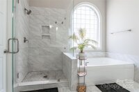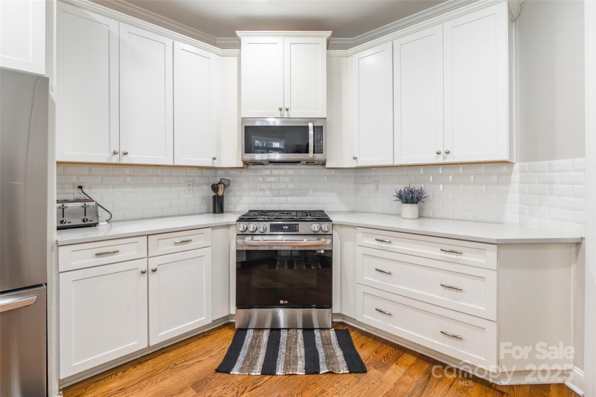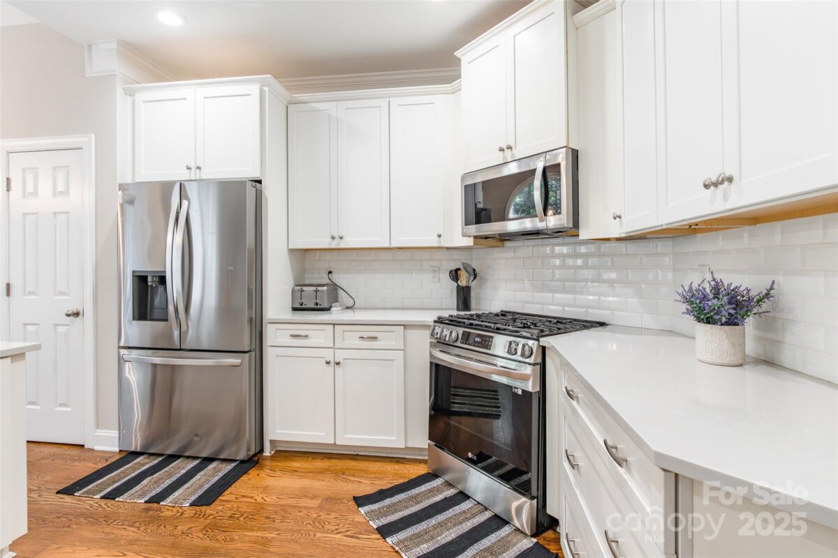 Rare Opportunity in Jetton Cove! Chances like this don't come around often! This gorgeous home is located in the highly desirable Jetton Cove neighborhood on the lakeside of Cornelius. The open floor plan welcomes you with soaring ceilings in the great room, a spacious foyer, and a bright breakfast nook. The chef's kitchen is a true showstopper, featuring quartz countertops, shaker-style cabinets, a gas stove, and a counter-depth refrigerator. The main-level primary ensuite offers quartz countertops, an enlarged seamless shower, and plenty of luxury touches. Also on the main floor, you'll find a versatile guest bedroom/office and another full bath. Hardwood floors flow throughout the lower level and upstairs hallway, leading to three additional bedrooms and a full bath on the upper level. Perfectly situated on a corner lot in one of Jetton Coves' most desirable sections, this home also offers incredible lifestyle perks: walking trails with lake views, there is a walking trail at the end of the cul-de-sac and walking-distance access to Jetton Park, Waterbean Coffee, the neighborhood park, Harris Teeter, and more. Don't miss your chance to live in one of Cornelius's most sought-after communities!