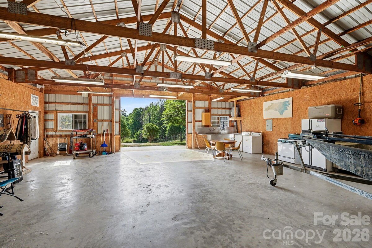 The mini-farm you've been waiting for is now AVAILABLE! 6.5 acres with a lovely farmhouse, HUGE outbuilding/workshop, 2 fenced pastures, and MORE set in the quiet countryside just 2.5 miles from the Broad River Greenway! Entering from Burke Rd, you will pass the first fenced pasture and shed on the right as you come up the shared gravel driveway. Perched on a gently sloping hill, the home has a welcoming rocking chair front porch--perfect for enjoying the peaceful evenings and long range farm view. Inside, the living room has warm wood paneling and a brick hearth gas log fireplace. Kitchen with tons of counter space, breakfast bar, and dining area with doors leading to a screened rear porch. Refrigerator with ice and water dispenser, washer, and dryer included! Smart floor plan with mudroom access straight from the garage with a pantry area and half bath with deep utility sink. Primary bedroom is on the main floor with attached en-suite bath. Upstairs, you will find 2 bedrooms with walk-out attic storage, one bathroom, and an additional bonus room. Great floor plan! Outside, there are so many amenities! The highlight is a 1,980 sf metal barn/shop (plumbed and wired) with an extensive covered porch--such a great OUTBUILDING for all of your hobbies and an awesome PARTY BARN! There is an additional wired storage building, 6 stall under roof dog kennel building with feed room (plumbed and wired) with a drainage system built into the concrete flooring, a large wood stock barn (wired) with stalls, hay loft, corral, and attached fenced pasture, and a small stock barn with corral in the front fenced pasture. The well supplies the upper pasture and shop, and county water supplies the house, small stock barn and kennels. Creek runs along the property line with an accessible covered bridge near road frontage. There is a recorded right of way for access from Burke Rd. and a shared driveway with the neighbor. Seller states the property will qualify for the Ag program (buyer to verify). All outbuildings and fences are sold AS IS. Great location and so much to offer!