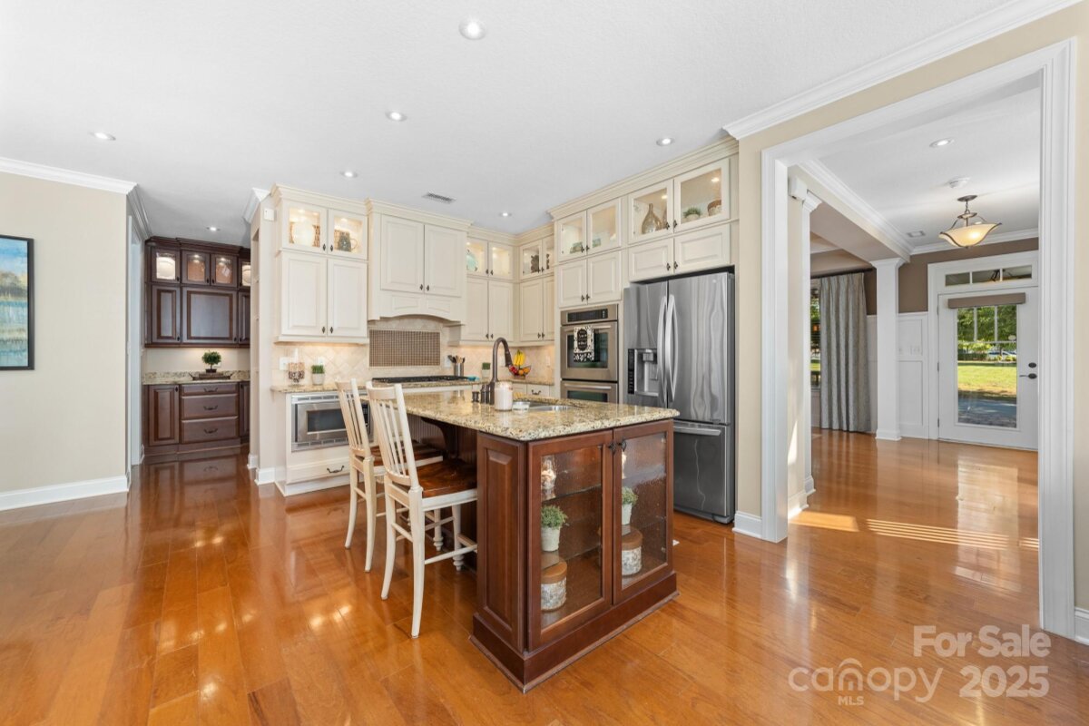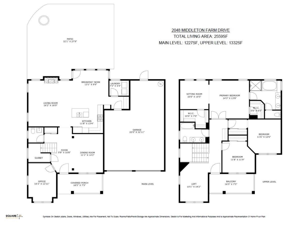 Welcome Home to 2048 Middleton Farm! This is a rare opportunity to purchase a former model home in the desirable South Point Village neighborhood of Belmont! Well maintained by the original owners, this home boasts many builder upgrades and additional improvements. Open concept kitchen features upgraded cabinets with accent lighting, stainless appliances, double oven, gas cooktop, and a butler's pantry. Beautiful windows with plantation shutters surround the living and breakfast areas with natural light. Stone fireplace with gas logs adds a cozy charm to the space. Elegant dining room with coffered ceiling and designer molding. French door allows privacy in the home office which features a dual built-in desk and window seat storage. Crown molding detail, high ceilings (9ft) and doorways (8ft) on both levels. Spacious primary ensuite is a relaxing retreat with a sitting area, tray ceiling, two custom walk-in closets, frameless glass shower, garden tub, and dual sink. Two additional bedrooms and a loft for flexible use space. Surround sound speaker system with individual volume control in living, office, primary bedroom, and loft. Don't miss the large storage closet under the stairs or the extra space in the garage perfect for a workshop, golf-cart, or even a third vehicle parked tandem. 240 volt outlet added to garage to accommodate EV chargers. Enjoy the outside on the upper or lower front porches, on the rear paver patio w/ pergola and firepit, or the greenspace just across the street. Sidewalks throughout the neighborhood lead to schools, Belmont Town Center w/ Harris Teeter, and even to downtown Belmont which is only one mile away. Public access to Lake Wylie is nearby. Only 15 minutes to the airport or 25 minutes to Uptown Charlotte.