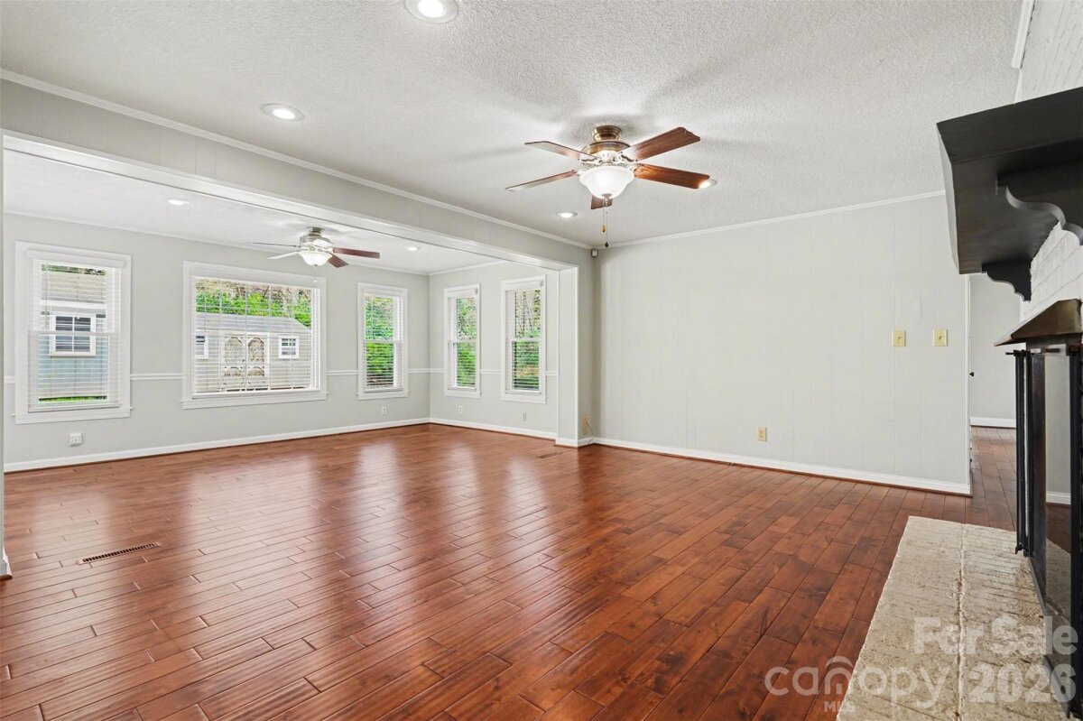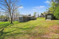 Beautifully maintained brick ranch with basement in prime, central location in Shelby across the street from Cleveland Country Club golf course. Many updates including NEW FLOORING, NEW WINDOWS, FRESH PAINT, and new plumbing including the line from the street. Three bedrooms/2 baths on the main floor w/ a large family room/sunroom, dining room, and kitchen w/ breakfast room area. Notice the details--classic Walker Woodworking kitchen and bath, Elfa storage systems in closets, built-in bookshelves and brick hearth fireplace w/ gas logs in family room, French doors onto patio, and hardwood and LVP floors throughout. Downstairs, find a space that could be used for multi-generational living including 1 bedroom, 1 bathroom with dual vanities, separate kitchenette area w/ eat-in breakfast space, and a huge family room w/ brick hearth fireplace. There is a covered exterior basement door...add a driveway for a true separate apartment! Additional large walk-in closet in basement gives extra storage space. TWO additional STORAGE BUILDINGS in the back provide even more space. Kitchen refrigerator, washer and gas dryer, and small refrigerator in basement remain. Seller is offering a ONE YEAR home warranty for buyers' peace of mind. Call today for a showing!