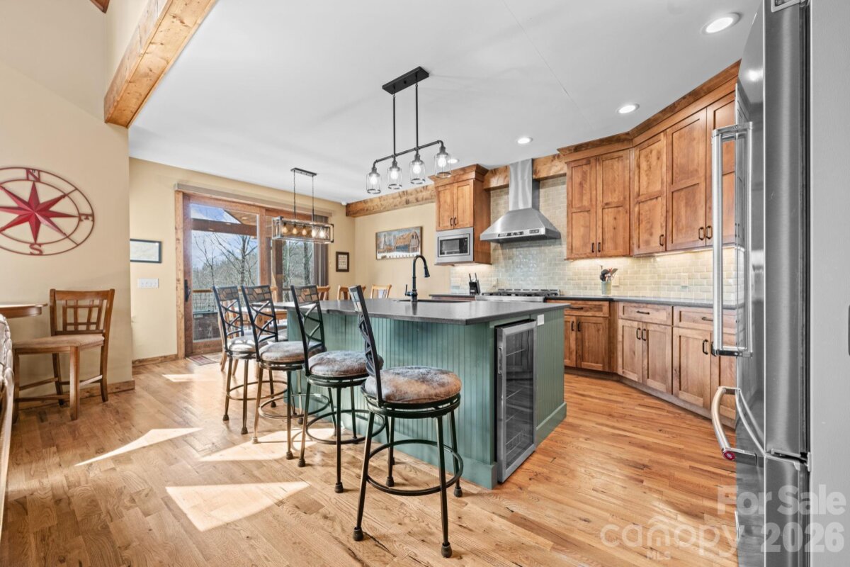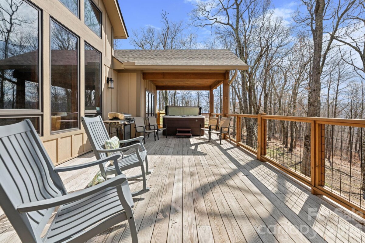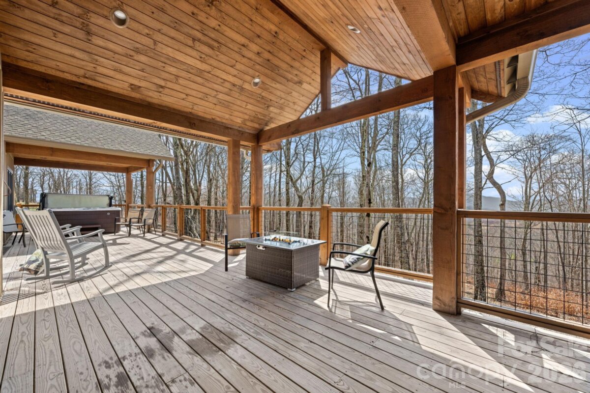 Looking for a newer, turnkey mountain retreat near downtown Banner Elk? Built in 2022 and located in the gated community of Monteagle, this modern craftsman estate offers the ultimate high-country lifestyle. A covered front entrance welcomes you into the main living area, where soaring tongue-and-groove ceilings and oversized windows fill the space with natural light and frame the mountain views. The floor to ceiling stone fireplace creates a warm focal point for gathering after a day of hiking or skiing in the mountains. The chef-inspired kitchen is well equipped featuring a gas stove, abundant cabinetry, and a large island with breakfast bar seating. The kitchen flows seamlessly into the dining area where large glass doors connect you to a covered deck for outdoor dining or sipping your morning coffee. The partially covered back deck runs the length of the home and includes a hot tub for relaxing while enjoying the mountain air. The main level features three spacious bedrooms, each with its own ensuite bath and walk-in shower. A laundry room, tastefully designed half bath, and an oversized two-car garage complete the main floor. Upstairs, a spacious bunk room with a pool table provides sleeping and recreational space. An additional sleeping nook and a full bath offer flexibility for guests. Outside, gather around the firepit and take in the mountain views, or star gaze on cool summer nights. Short and long-term rentals are permitted, offering flexibility of use.
