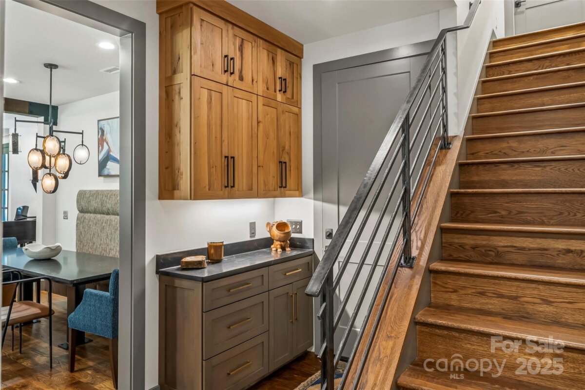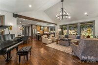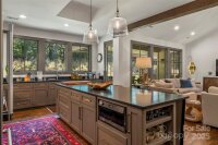 Tucked away on a peaceful acre in one of Morganton’s most desirable small developments, this 2022 custom-built modern ranch is a true showcase of craftsmanship and comfort. Designed to embrace its natural setting, the home features stone and cement siding accented with cypress posts, 42 Jeld-Wen windows, and 3/4" tongue-and-groove hardwood floors throughout. Inside, the open-concept layout welcomes you with a chef’s kitchen boasting high-end appliances, oversized gas range, a 10’ island, walk-in pantry, and custom cabinetry topped with granite surfaces. The dining area—with its striking custom granite banquette table for 10—flows into a spacious family room and out to a large covered patio for effortless indoor-outdoor living. A separate den with vaulted ceiling and fireplace leads to a charming side porch, perfect for morning coffee or unwinding at day’s end. Each of the 3 bedrooms enjoys a private ensuite bath and walk-in closet, with the main-level primary retreat offering vaulted ceilings, patio access, and a spa-like bath filled with natural light, custom cabinetry, and direct access to the laundry suite. Additional highlights include custom metalwork throughout, extensive storage, a 2-car garage with a drop zone entry right off the kitchen, and timeless details that make this home truly one of a kind. Convenient to downtown Morganton and I-40, this home blends modern luxury with peaceful living in a setting that feels both private and connected.