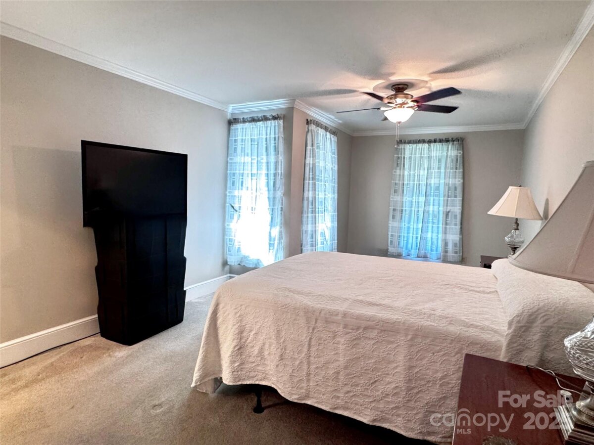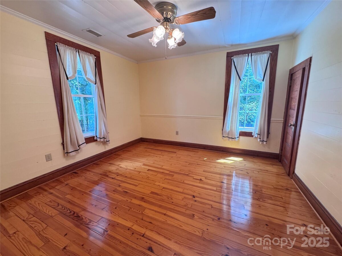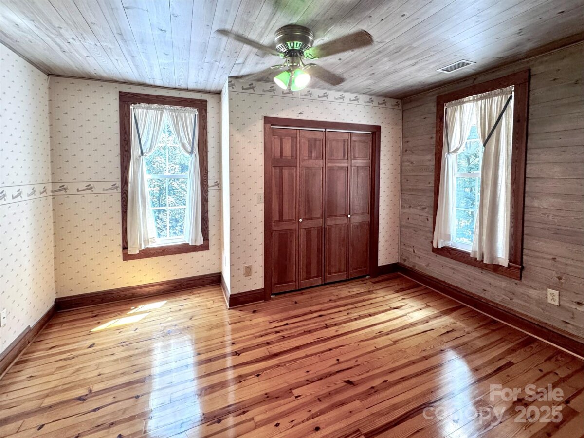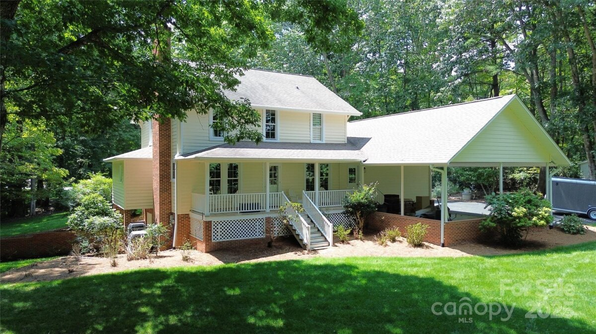 SELLER WILL OFFER INTEREST BUYDOWN WITH ACCEPTABLE OFFER. HOME WARRANTY INCLUDED. This elegant, refurbished 1946 farmhouse offers a unique blend of historic charm w/modern updates.Relocated to its current site in 1988,nestled among mature trees within a quiet cul-de-sac w/ convenient access to nearby Cedarbrook Country Club and Golf Course.The spacious 4BR home is move-in ready and features custom oak cabinetry, granite countertops, and a kitchen island.HVAC system 2011 and updated electrical system.Main-level laundry, primary bedroom w/ an en-suite bath.Notable historic details include original heart pine floors and a brick fireplace salvaged from the old Chatham Mfg. building.Upstairs, original ship lap board, which adds character.The 2023 replacement windows for energy efficiency.Permanent stairs provide access to a floored attic space, offering valuable storage. Partially finished walkout basement with full bath and 2 workshops. 8 total parking spaces (2 covered) and 2.61 acres+/- of land.No HOA and no restrictions. Nice storage shed for additional storage.