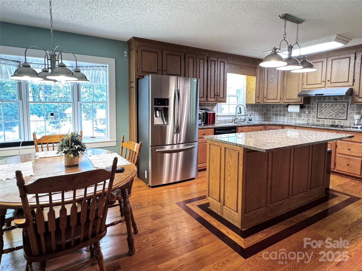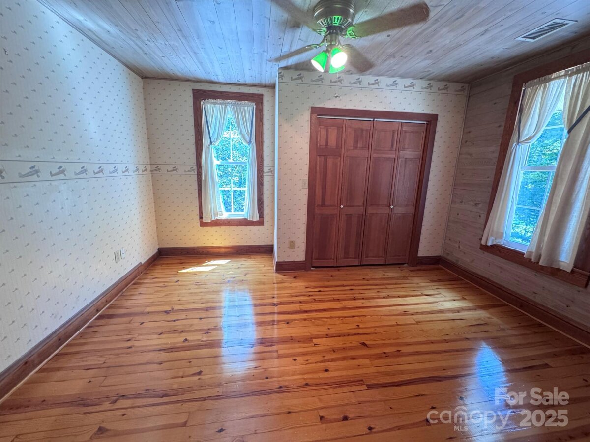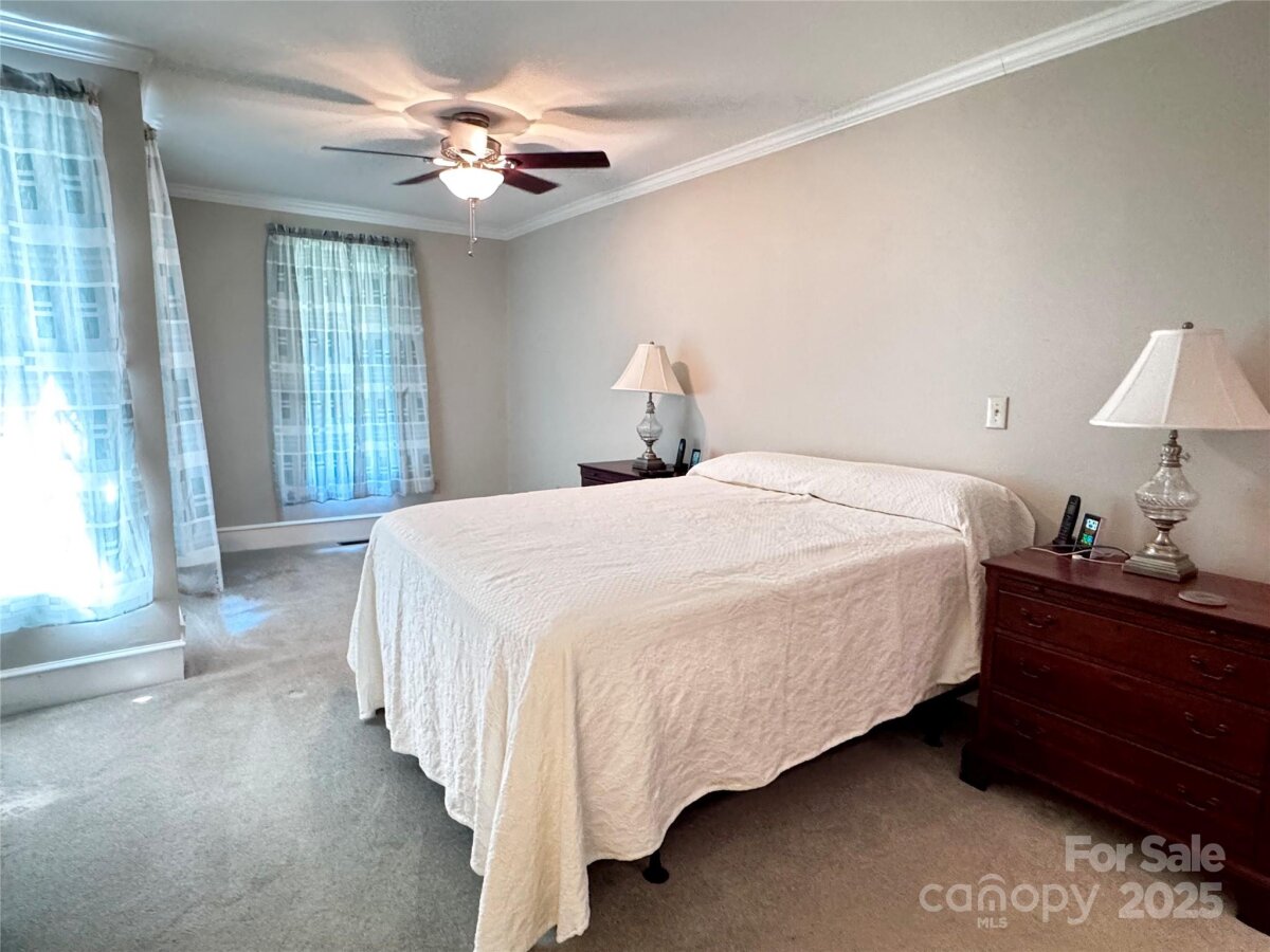 SELLER WILL OFFER INTEREST BUYDOWN WITH ACCEPTABLE OFFER. HOME WARRANTY INCLUDED. This elegant, refurbished 1946 farmhouse offers a unique blend of historic charm w/modern updates.Relocated to its current site in 1988,nestled among mature trees within a quiet cul-de-sac w/ convenient access to nearby Cedarbrook Country Club and Golf Course.The spacious 4BR home is move-in ready and features custom oak cabinetry, granite countertops, and a kitchen island.HVAC system 2011 and updated electrical system.Main-level laundry, primary bedroom w/ an en-suite bath.Notable historic details include original heart pine floors and a brick fireplace salvaged from the old Chatham Mfg. building.Upstairs, original ship lap board, which adds character.The 2023 replacement windows for energy efficiency.Permanent stairs provide access to a floored attic space, offering valuable storage. Partially finished walkout basement with full bath and 2 workshops. 8 total parking spaces (2 covered) and 2.61 acres+/- of land.No HOA and no restrictions. Nice storage shed for additional storage.