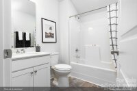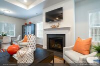 The Gwinnett II C offers the perfect blend of comfort, style, and thoughtful design. With nine-foot ceilings throughout the first floor, this elegant one-and-a-half-story home feels open, bright, and inviting from the moment you step inside. Featuring four bedrooms and three bathrooms, the layout is crafted for both everyday living and effortless entertaining. At the heart of the home, the open-concept kitchen flows seamlessly into the great room, where a cozy fireplace and a casual dining area create a warm, welcoming gathering space. The kitchen includes a central island with a breakfast bar and a spacious pantry, offering both convenience and charm. The primary suite, located just off the great room, features a generous walk-in closet, two linen closets, and a private water closet for added comfort. Two secondary bedrooms and a full bathroom are situated at the front of the home, while a fourth bedroom—or flexible home office—near the garage entry provides added privacy for guests or work. Upstairs, a versatile bonus room offers additional living space, along with unfinished, floored storage for even more functionality. Thoughtfully designed from top to bottom, the Gwinnett II C delivers a welcoming environment ideal for modern living.