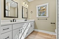 Nestled in a tranquil community, this gorgeous new build trimmed with vertical vinyl siding offers the perfect blend of country charm and modern elegance. Set on over 0.7 acres, your backyard opens to a serene pasture view—ideal for peaceful morning coffee and sunset reflections. Enter through the wide brick staircase to a welcoming, covered front porch, beautifully accented with elongated windows and richly stained wood trim that frame the scenic surroundings. Inside, the open-concept layout is bathed in natural light, creating a bright and airy space perfect for entertaining family and friends. The kitchen is a true centerpiece, featuring a walk-up island with gleaming quartz countertops, stylish pendant lighting, and a full suite of GE stainless steel appliances—including a 5-burner cooktop with warming zone and power boil functionality. The split-bedroom design ensures privacy, with the primary suite tucked away for comfort overlooking the backyard. The luxurious en-suite bath boasts a dual vanity and a sleek subway-tiled shower with a modern glass barn-style sliding door. The secondary bedrooms are generously sized and share a well-appointed bathroom complete with a soaking tub and a rainhead shower—perfect for unwinding after a long day. Step into a space that feels like home from the moment you arrive. You will certainly fall in love with this new construction home this Fall! Note: Listing agent related to seller.