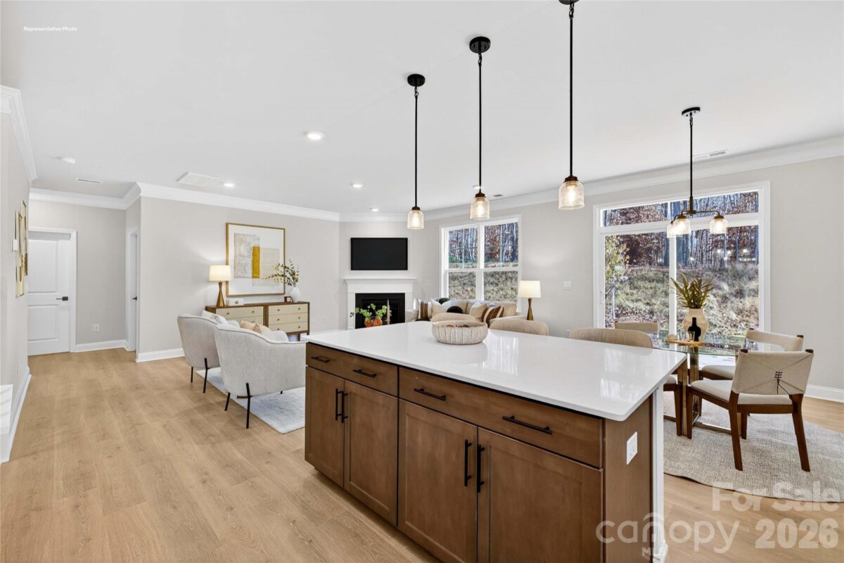 Come see 2055 Gallinule Drive located in Indian Trail, NC! This stunning home showcases impeccable craftsmanship and attention to detail, offering a blend of harmonious style, functionality, and elegance. The London is perfect for those seeking a balance between tranquility and convenience. This home offers four bedrooms, four bathrooms, a sunroom and a two-car garage. The moment you step on the front porch and into the home you’ll be greeted by a foyer that seamlessly integrates the living, dinning, and kitchen areas. The kitchen is equipped with stainless steel appliances, ample storage space, a pantry, and center island, perfect for cooking and casual dining. Adjacent to the living room is a bedroom that provides convenience. The primary suite features an en-suite bathroom with a seated luxury shower, dual vanities, and walk-in closet. The additional bedrooms provide comfort and privacy and share access to a secondary bathroom. A recreational room can be customized to your specific needs. Don’t miss this opportunity!