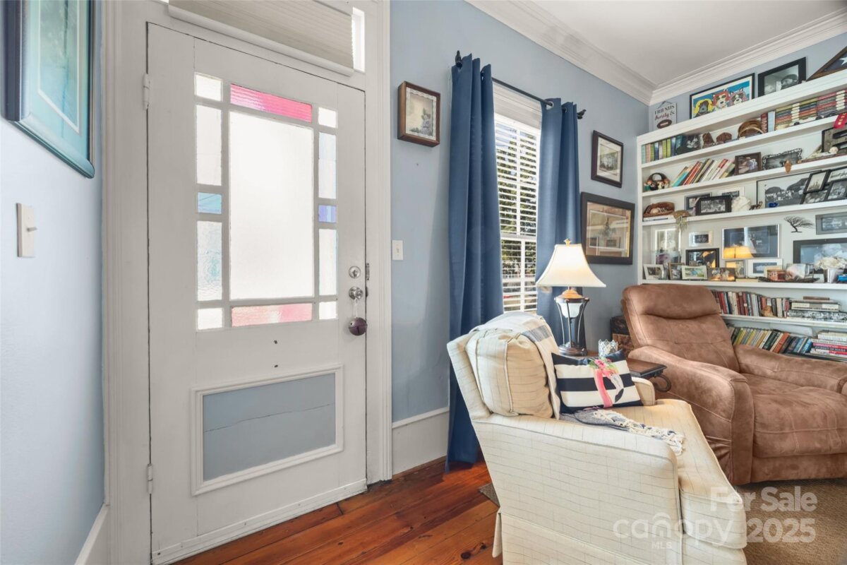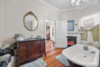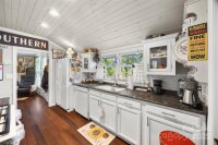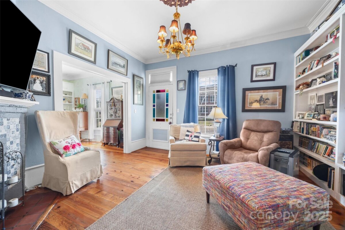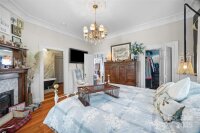 Rare opportunity to own a piece of history in the heart of York! You will fall in love with this charming historic home on a private lot with a fenced backyard, lush landscaping, a fire pit, a storage shed and a fish pond with a fountain. The antique hand-carved front door leads you into the home, where you'll find original hardwood floors, high ceilings with beautiful chandeliers, built in shelving in the living room and dining room, and ornate antique moldings throughout. The kitchen features a gas range and a walk-in pantry. The primary suite has two closets and a remodeled bathroom with a claw tub, a tile shower and an electric fireplace. The second bedroom in the rear of the home opens to the backyard and does not have a closet. Other features include a tankless hot water heater, a central vac, and a half bath off the kitchen added in 2023. Located just a couple of blocks from all of the shopping, restaurants and entertainment in the quaint village of York, this is the perfect place to call home!