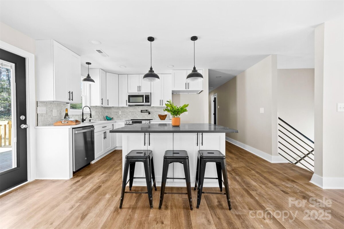 A TOTAL remodel from Foundation to Roof, 3BR-3 Full BA Nearly 1900sqft with 2nd living quarters lower level! All NEW Plumbing, Electrical, 30year Roof, HVAC & Water Heater! Complete interior custom upfit - All new Walls, Paint, Matte Black fixtures & lighting, Doors, Low E Windows and Lifetime 28ml LVP flooring throughout. Custom stair railings. Two Brand new kitchens-one for each level, BOTH with European Cabinetry, Quartz countertops, and slow closing doors & drawers and custom tile backsplashes. Very unique lighting package throughout, Marble bathtub & shower surrounds. Matte Black finished River run interior doors. Private access to lower-level suite & garage area. Custom 12x16 deck! 2nd living quarter exhibits a full bath, full kitchen area and nearly 500sqft of flex space to make into living and/or bedroom space with separate high quality mini split heating/cooling . 2 car garage and workshop space!