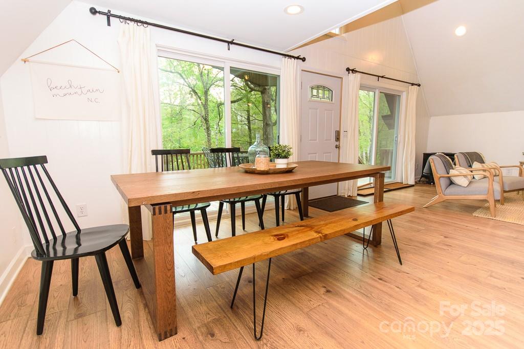This classic A frame mountain chalet on Beech Mountain blends timeless alpine character with fresh, modern updates, offering the best of both worlds. With original Tudor style windows and architectural charm throughout, the home has been thoughtfully renovated to meet today’s standards of comfort and style. The 3 bedroom 2 bath layout features spacious bedrooms with bright floors and generous storage, while the remodeled kitchen and bathrooms offer sleek, contemporary finishes. The open concept living room is filled with natural light, highlighted by soaring ceilings and a catwalk above, creating a bright and airy retreat for relaxing or entertaining. Step outside to enjoy multiple decks that expand the living space into the outdoors, along with a firepit and a large, usable yard perfect for gatherings or play. After a day on the slopes, the convenient mudroom entry serves as a perfect drop zone, complete with benches to kick off snow boots and store skis. This fully furnished home has a proven rental history, making it a turnkey investment or personal getaway. A rare find on Beech Mountain, the flat paved driveway provides easy access and ample parking, and main level living ensures convenience and accessibility. Mountain living doesn’t get more inviting than this.
