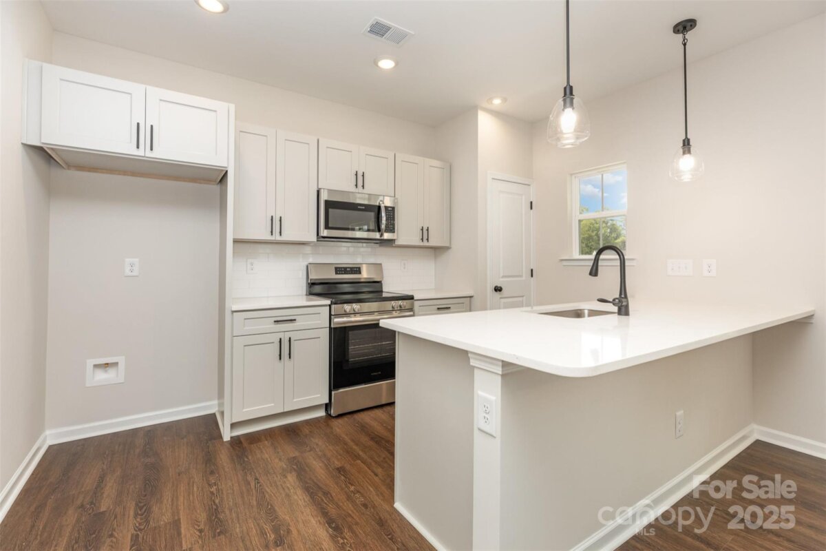 Price just reduced 10K!! $10,000 in closing cost credits with preferred lenders. Last Banyan now available in Sadler Village! The brand-new floorplan includes 3 bedrooms, 3 full baths, exterior deck off of the living room & double-car garage. Gorgeous SPC flooring throughout main floor seamlessly connects living, dining & kitchen areas. Beautiful exterior deck off of the living room. Kitchen features soft-close, dovetail shaker cabinetry & quartz countertops paired with tile backsplash that shines next to the stainless-steel appliances. One bedroom & full bath on main floor. Primary suite, another bedroom & 2 more full baths located on the 3rd floor! All full bathrooms have beautiful quartz countertops atop shaker, soft-close cabinets & framed mirrors. The practical third floor laundry room boasts a recessed dryer vent. Sadler Village is located just 10 minutes from Charlotte airport & 15 minutes from Uptown. Ready in January 2026!