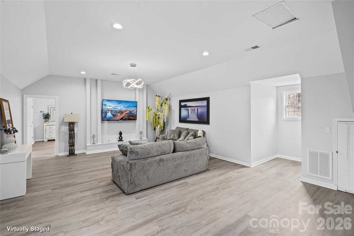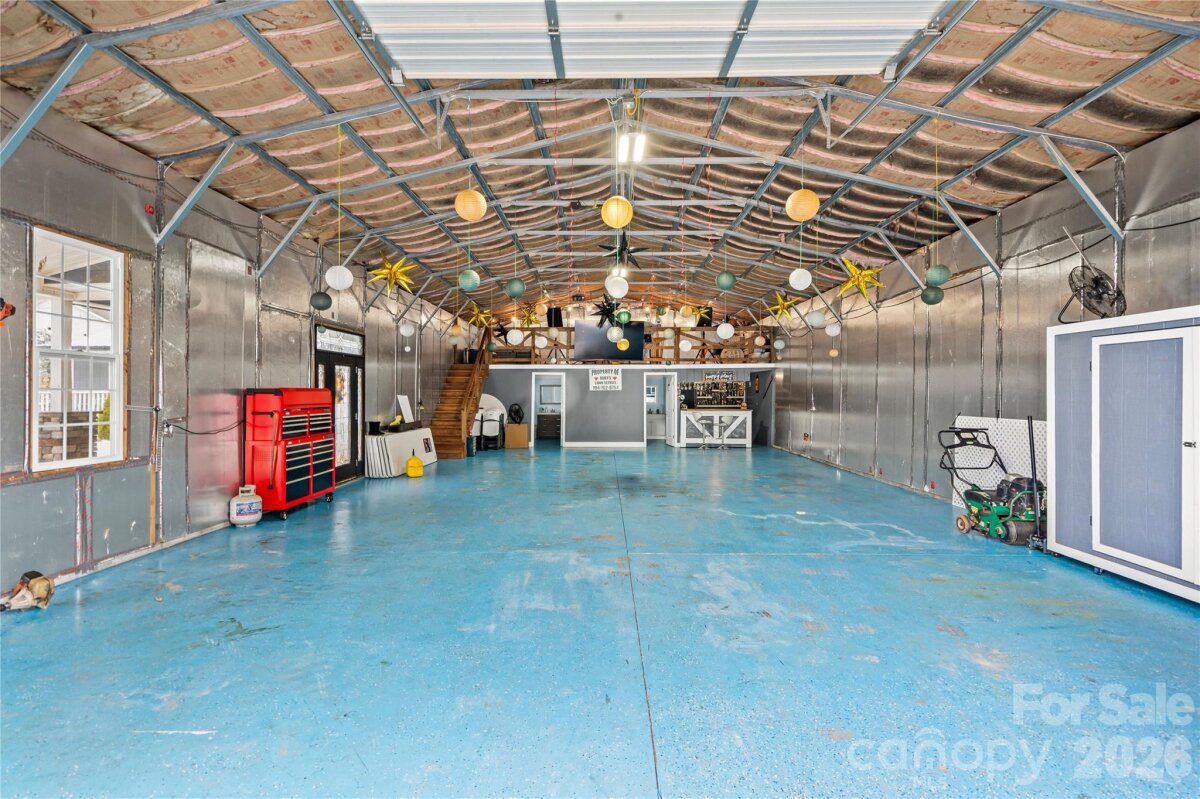 Hidden luxury awaits. Built in 2020, this stunning two-story custom home features 10-foot ceilings on main level, ceramic tile flooring, tray ceilings, and recessed lighting throughout. A striking, internationally custom-ordered front door welcomes you into a receiving den with a cozy marble fireplace, flowing seamlessly into the open and spacious living room, perfect for entertaining. The gourmet kitchen boasts stainless steel appliances and a show-stopping island with a waterfall marble countertop. The primary suite is a true retreat, featuring tray ceilings and a spa-inspired bathroom with ceramic tile walls, double vanity, stand-up shower, and garden tub. Upstairs, you’ll find 9-foot ceilings, a spacious family room ideal for a home theater, gym, or entertainment area, along with an additional bedroom, bonus room perfect for an office or guest room, and a full bathroom. Step outside through elegant French doors to a large covered rear porch and paved patio with a brick fireplace, overlooking beautifully landscaped grounds accented with palm trees. Follow the paved walkway to a firepit area with built-in swing chairs, creating a serene outdoor oasis. The property also includes a 12x30 she-shed with a covered front porch, ideal for an office, gym, or creative space, as well as an impressive 30x60 workshop with 12-foot ceilings, two half baths, and a second-level floor, currently used as a workshop and party area. Conveniently located near Hwy 29 and I-85, and just 10 minutes from shopping, groceries, and entertainment, this one-of-a-kind property offers luxury living with unmatched versatility.