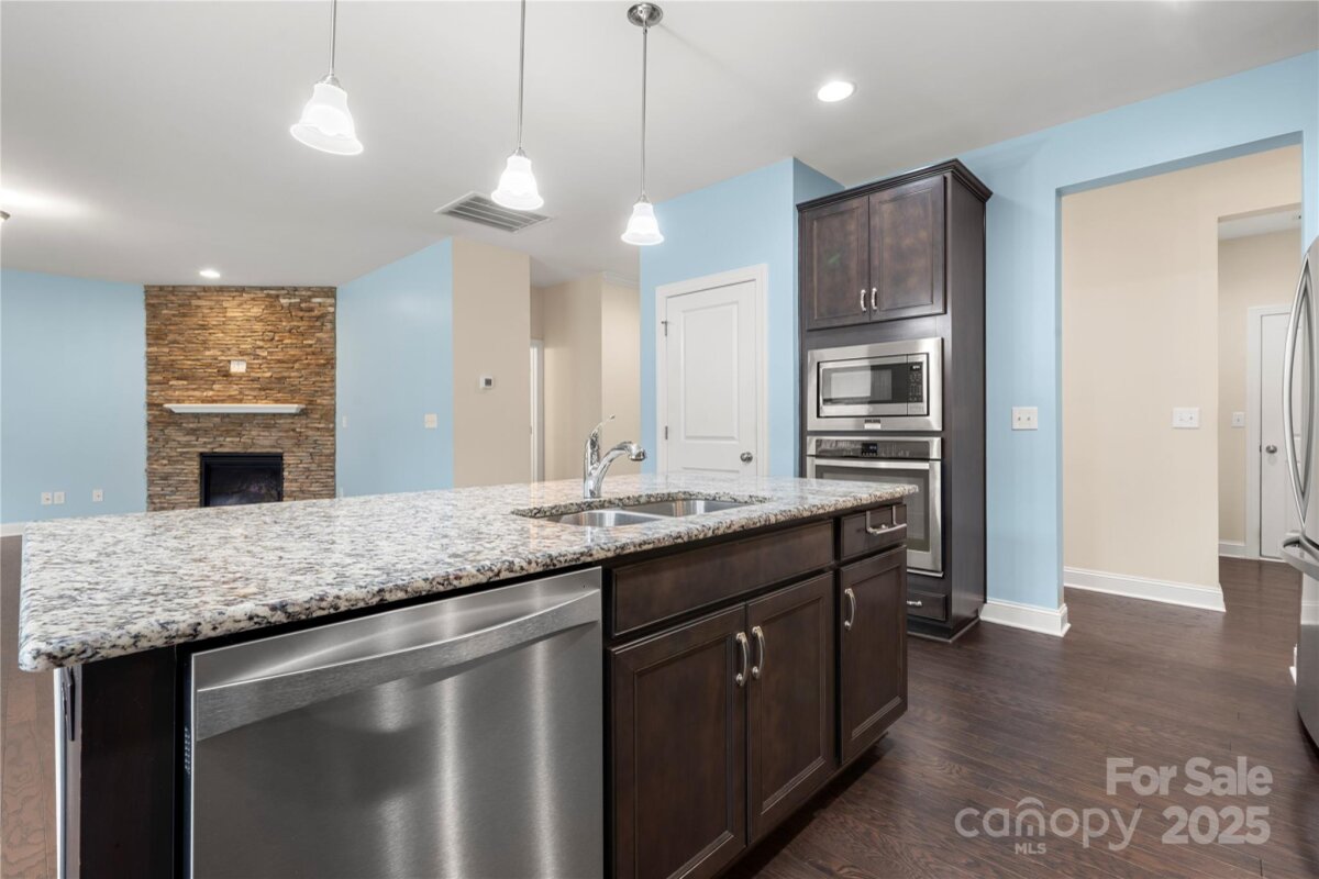 Welcome to this 2018-built home nestled in the Old Blairs Mill community. Situated on nearly half an acre, this property truly has it all. Step inside to find engineered hardwood floors flowing throughout most of the main level. The kitchen features granite countertops, an island with bar seating, stainless steel appliances, and a dining area, all opening seamlessly into the living room with a gas fireplace. The primary suite on the main level offers a tray ceiling, walk-in closet, and an ensuite bathroom with a double vanity and a walk-in shower with a built-in bench. Two additional bedrooms—each with walk-in closets—share a Jack and Jill bath. A half bath, laundry room, and a formal dining area complete the main level. Upstairs, you’ll find a 270 sq ft bonus/bedroom with a walk-in closet and access to a full bath, perfect for guests or a flex space. Step outside to enjoy a paver patio with an outdoor fireplace and a retractable SunSetter awning with LED lighting—perfect for relaxing or entertaining. The three-car garage also provides ample storage and convenience. The community features a pond with a deck and is conveniently located near shopping, dining, and more!
