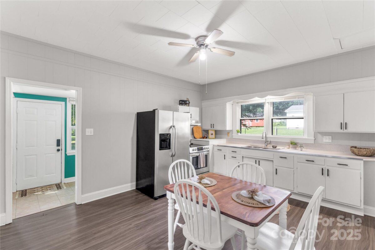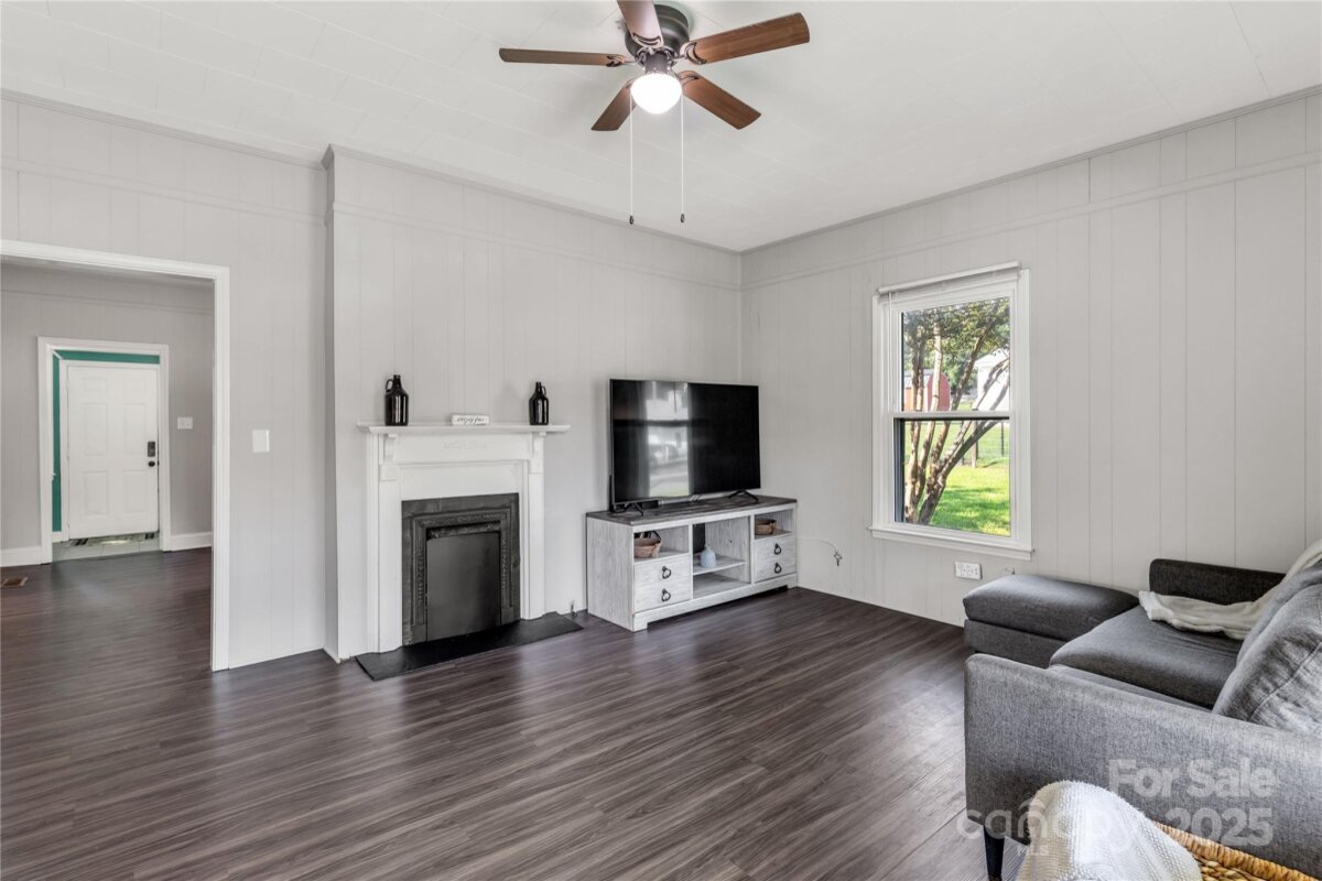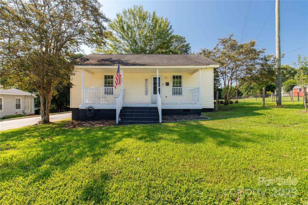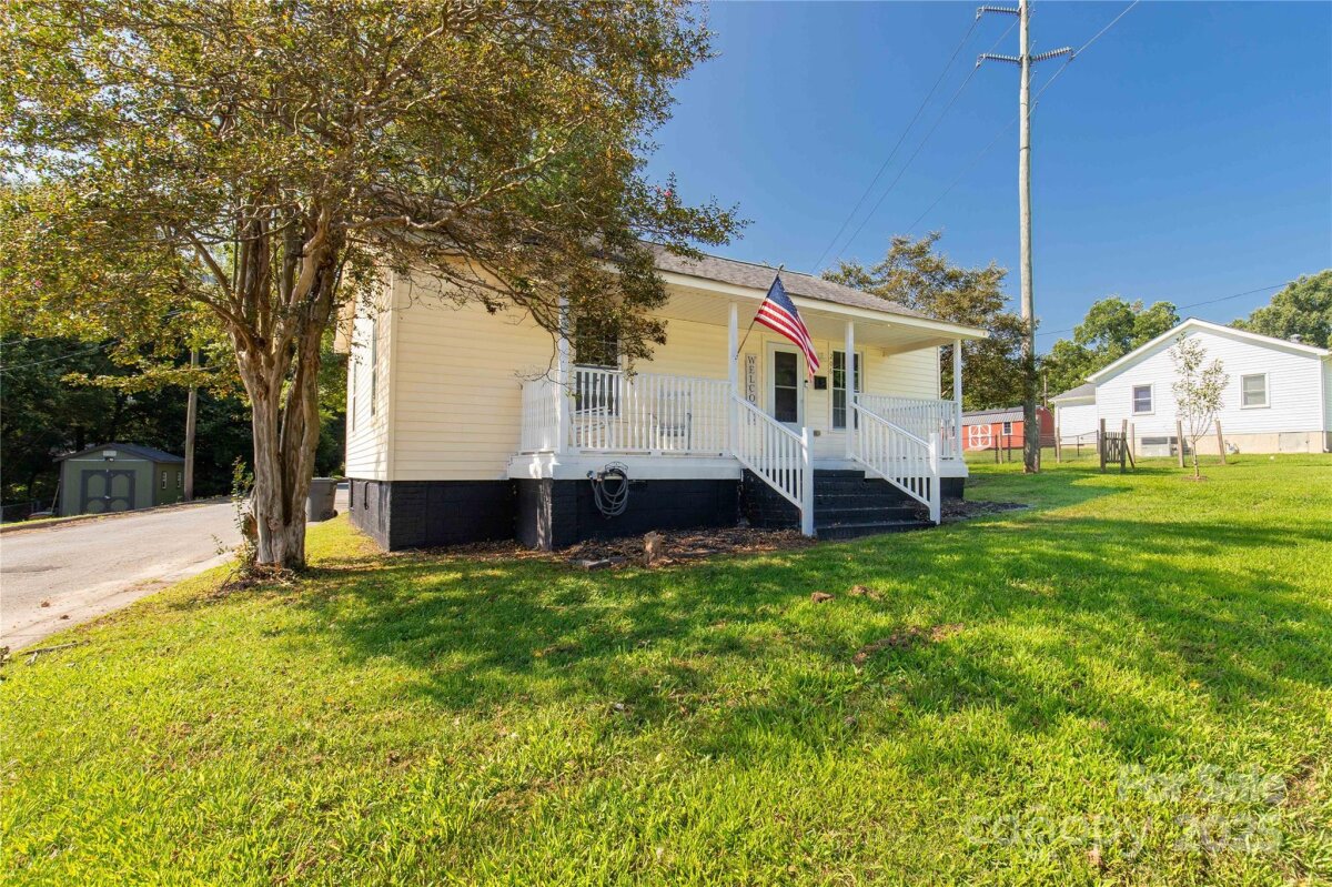 Welcome to this beautifully maintained 2 bedroom, 2 full bath bungalow on a spacious corner lot in the heart of Clover, SC! This 1950s home blends old southern charm with sleek modern updates, featuring tall ceilings, light and airy rooms, and fresh paint throughout, and ready to call home. Two beautiful fireplaces serve as striking architectural accents, adding warmth and character to the secondary bedroom and living room. The spacious kitchen shines with new stainless steel appliances, while other recent upgrades include—fresh gravel for the driveway and R-30 attic insulation—add peace of mind and efficiency. Relax on the rocking chair front porch or enjoy the comfort of the fenced backyard under the stars. Mature trees frame the property beautifully, adding shade and character. Ideally located in the desirable Clover School District with easy access to shopping, dining, commuter routes, just minutes from Lake Wylie and Charlotte, this charming bungalow is ready to welcome you home.