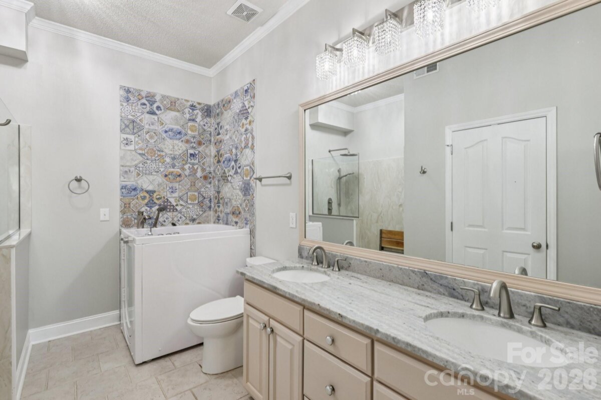 Located in the beautiful gated Golf Community of Uwharrie Point on Lovely Badin Lake. Situated on Millingport Lane fronting the Putting Green and walking trail. Wonderful amenities for the entire family. Approximately 1 Hr. from Charlotte and Greensboro. This lovely home has 3 Bedrooms ( 2 on the main level - with one being the master bedroom with full BA with walk in tub with seat and standup shower- and 1 master on the second floor), 3 Baths, 1 car garage with Epoxy floor covering. Nice covered porch, great screened area from which to view the putting green, just sit and relax and watch your favorite game first hand! See through gas fireplace in the Living room. New heat pump 2025, Stove was replaced when the owner purchased the home. Lots of upgrades. Give us a call and treat yourself to a viewing this amazing property.