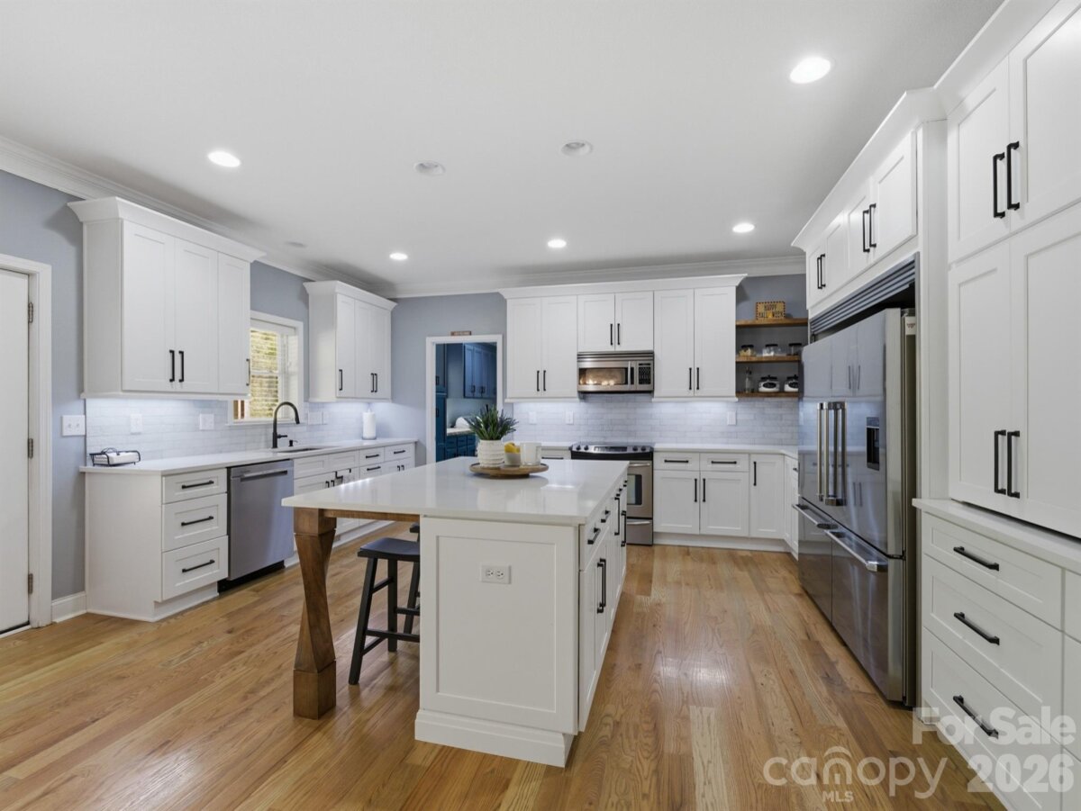 Welcome home to this beautifully maintained and thoughtfully updated property that’s ready for you to move right in and enjoy. The heart of the home is the stunning, fully renovated kitchen featuring quartz countertops, a stylish tile backsplash, and custom-built cabinets that include handy outlets for your small appliances. With extra-tall cabinets, pull-out drawers, and a commercial refrigerator and freezer, this kitchen is perfect for everyday cooking and family gatherings. The spacious laundry room offers a butcher block countertop and plenty of cabinets to help keep everything organized and tidy. You’ll love the three-car garage setup, with one detached bay that’s been turned into an amazing workshop space. It has epoxy flooring, a sink, a wood stove, and lots of outlets for all your tools—great for DIY projects, hobbies, or just tinkering around. The backyard is made for relaxing and spending time with family and friends. It’s fully fenced, with wood fencing on the front and sides for privacy and chain link along the back so you can still enjoy the view. There’s an above-ground pool with a big patio for lounging and a walkway that leads to the screened-in porch, where you can sit and enjoy a quiet morning coffee or a peaceful evening. The front porch has outlets in the ceiling for hanging lights, and there’s also a deck off the screened-in porch—perfect for outdoor dining or fall evenings by the fire pit. Inside, you’ll find new hardwood floors throughout the main level and a bright, freshly painted primary bedroom suite. The ensuite bathroom includes a walk-in shower with a rain shower head, a relaxing garden tub, and custom-built cabinets for extra storage. The home also features a whole-house water filtration system, a fully encapsulated crawl space by Dry-Pro, and newer windows across the front for better efficiency and comfort. Upstairs offers even more space, with a large bedroom, a kitchenette, and a roomy recreation area that can be used in so many ways—perfect for guests, an older child, or even a private suite for extended family. From top to bottom, this home has been cared for with attention to detail and pride of ownership. It combines modern updates with practical features that make everyday living easy and enjoyable. Conveniently located just minutes from the highway, this property offers the best of both worlds—quiet, comfortable living with quick access to shopping, schools, and everything you need.