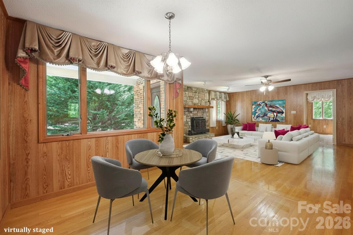 Price improvement. Take another look! Professional landscapers home. Solid built 3BR/3BA all brick home with full bsmt on 1.0 private acre. Over 2,800 sq.ft of heated living space. Main level and bsmt each have own separate heating system. Roof 2 years new. Anderson & replacement windows. Hidden driveway entry leads to attached carport with separate lower drive room for an RV. Home has lots of natural light with original hardwood flooring throughout the main level. Open floorplan with efficient bright kitchen, plenty of cabinet storage & breakfast bar that looks over the living room, rock wood burning fireplace and access to the back covered deck. Primary bedroom En-suite full tub bathroom & WIC. Additional two bedrooms and 2nd full bathroom & Laundry also on the main level. Ample closet space throughout the home. Partially finished bsmt with int. & ext. entry. Separate own propane gas heat pump. Oversized family room with 2nd fireplace. 3rd full bath area with tons of additional storage. Shown by Appt.