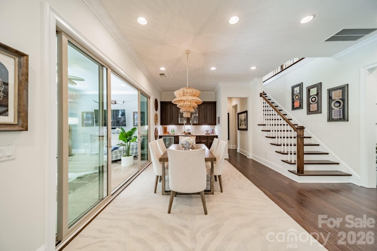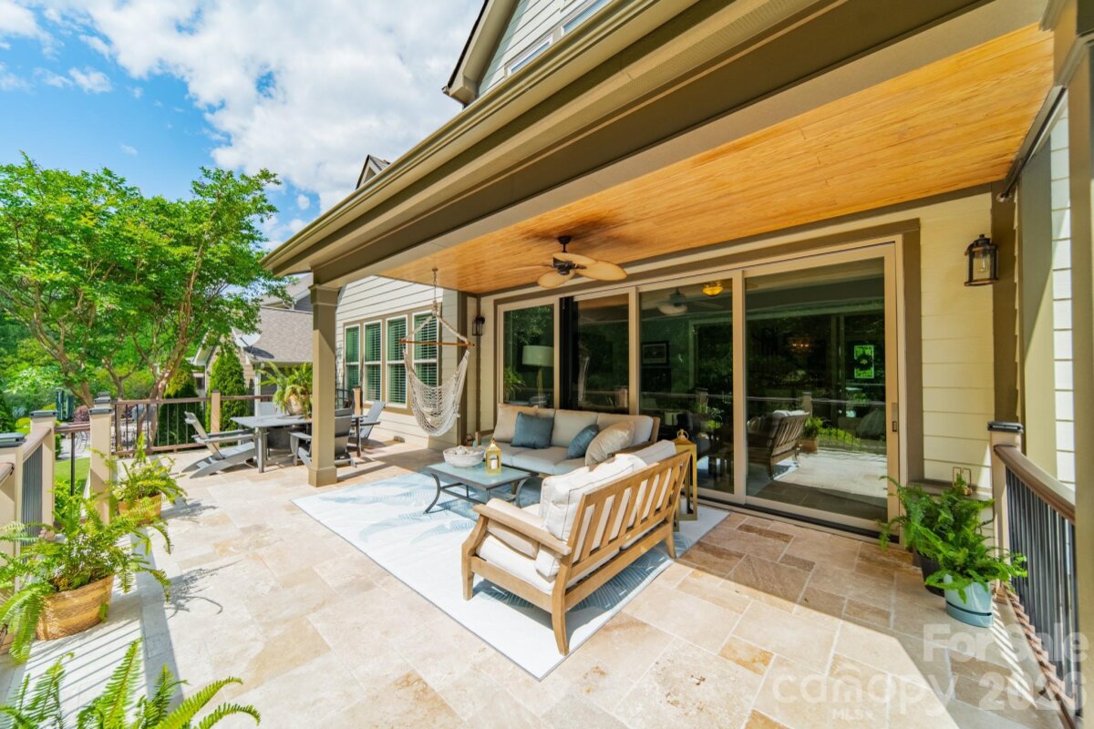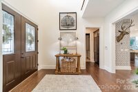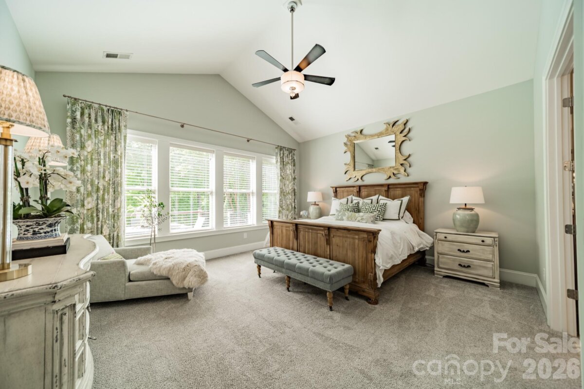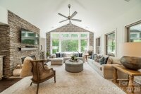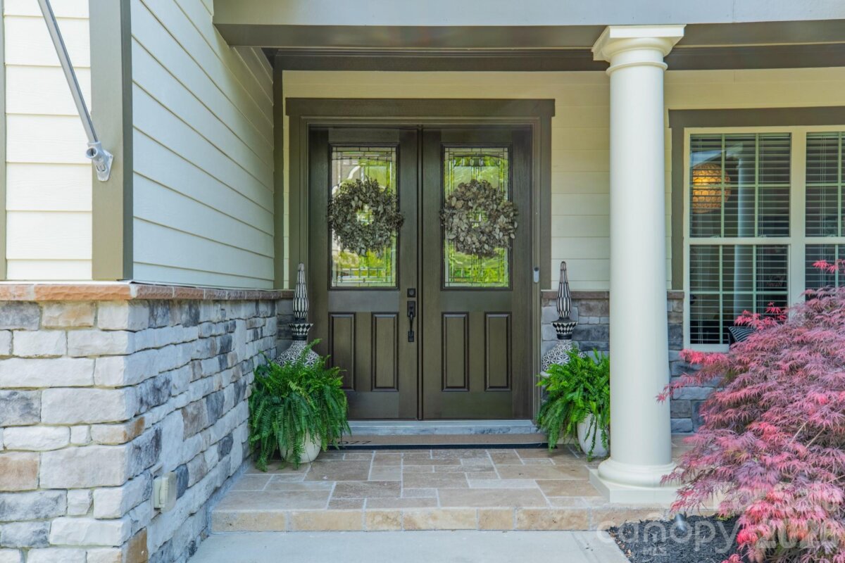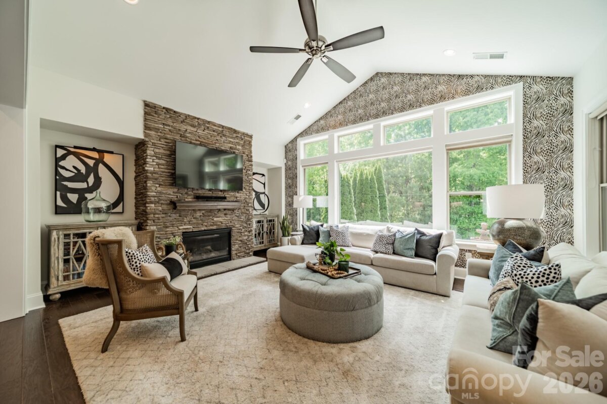 Stunning 5-bedroom, 4 full bath, 2 half bath home in the coveted Springfield community of Fort Mill, ideally positioned on the 13th green of the Springfield Golf Course. Thoughtfully designed for both everyday living and elevated entertaining, this home showcases an open-concept layout filled with natural light and refined architectural details throughout. A dramatic two-story foyer sets the tone, opening to an inviting floor plan anchored by a spacious family room with cathedral ceilings, a stacked stone fireplace, and a wall of windows framing picturesque backyard and golf course views. The chef’s kitchen serves as the heart of the home, featuring a large island with farmhouse sink, gas cooktop, split cooking design with double ovens, a walk-in pantry with custom built-ins, and new GE Café refrigerator and dishwasher. The adjacent dining area with built-in bar and beverage refrigerator, along with a light-filled sunroom with travertine flooring and sliding doors, enhances the home’s effortless flow for entertaining. The main level offers a luxurious primary suite with vaulted ceilings, a spa-inspired bath complete with garden tub, tiled shower, dual vanities, and a custom closet system. A private guest suite with en-suite bath, dedicated office with French doors and designer finishes, powder bath, and a well-appointed laundry room with custom cabinetry complete the main level. Upstairs, exceptional flexibility continues with three additional bedrooms, including a well-appointed secondary suite with a private sitting area, spa-inspired bath with heated floors, and a wall of windows overlooking the backyard. Another secondary bedroom features a spacious custom closet with a built-in washer and dryer, while the third offers its own en-suite bath. A versatile loft with convenient access to a powder bath along with walk-in attic storage offering excellent functionality and abundant storage options. Outdoor living is equally impressive, with a covered porch featuring a tongue-and-groove ceiling and travertine flooring, complemented by a deck designed for low maintenance, perfect for relaxing or entertaining while enjoying the serene backyard views. Additional highlights include hardwood flooring, custom designer lighting, a whole-house water filtration system, and a spacious 3-car garage with split configuration. A golf cart is included, enhancing the ease of enjoying the community’s amenities and golf lifestyle. Springfield offers a premier lifestyle with resort-style amenities including championship golf, clubhouse, pool, fitness center, tennis, pickleball, playgrounds, walking trails, and direct access with included membership to the Anne Springs Close Greenway. Conveniently located near I-77, Charlotte, and the airport, and zoned for top-rated Fort Mill schools.
