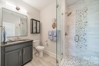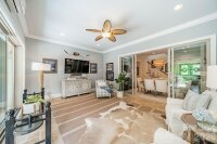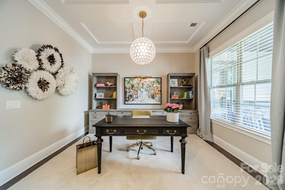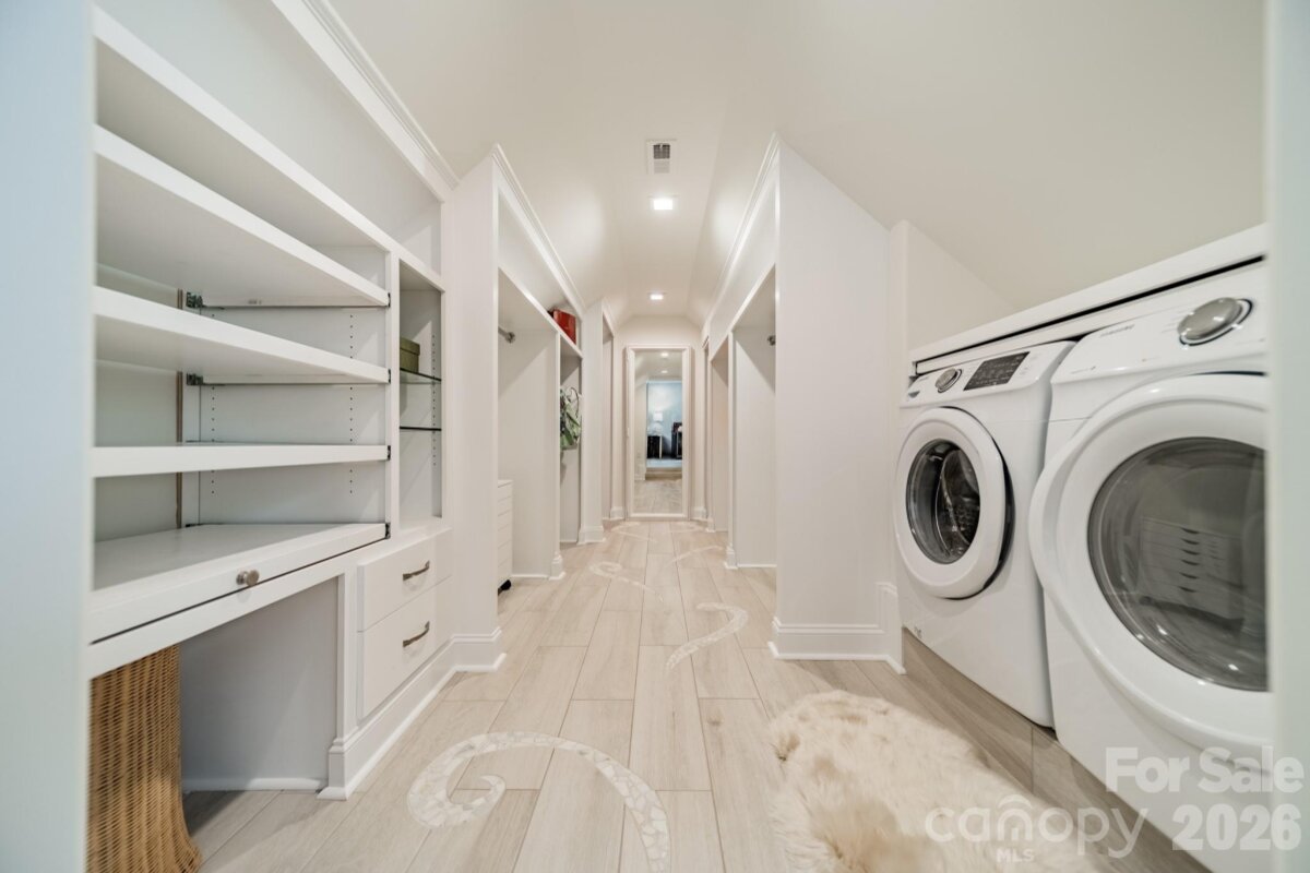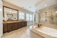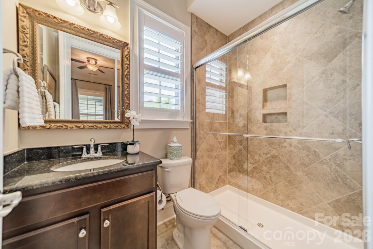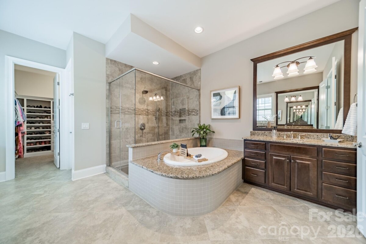 Stunning 5-bedroom, 4 full bath, 2 half bath home in the coveted Springfield community of Fort Mill, ideally positioned on the 13th green of the Springfield Golf Course. Thoughtfully designed for both everyday living and elevated entertaining, this home showcases an open-concept layout filled with natural light and refined architectural details throughout. A dramatic two-story foyer sets the tone, opening to an inviting floor plan anchored by a spacious family room with cathedral ceilings, a stacked stone fireplace, and a wall of windows framing picturesque backyard and golf course views. The chef’s kitchen serves as the heart of the home, featuring a large island with farmhouse sink, gas cooktop, split cooking design with double ovens, a walk-in pantry with custom built-ins, and new GE Café refrigerator and dishwasher. The adjacent dining area with built-in bar and beverage refrigerator, along with a light-filled sunroom with travertine flooring and sliding doors, enhances the home’s effortless flow for entertaining. The main level offers a luxurious primary suite with vaulted ceilings, a spa-inspired bath complete with garden tub, tiled shower, dual vanities, and a custom closet system. A private guest suite with en-suite bath, dedicated office with French doors and designer finishes, powder bath, and a well-appointed laundry room with custom cabinetry complete the main level. Upstairs, exceptional flexibility continues with three additional bedrooms, including a well-appointed secondary suite with a private sitting area, spa-inspired bath with heated floors, and a wall of windows overlooking the backyard. Another secondary bedroom features a spacious custom closet with a built-in washer and dryer, while the third offers its own en-suite bath. A versatile loft with convenient access to a powder bath along with walk-in attic storage offering excellent functionality and abundant storage options. Outdoor living is equally impressive, with a covered porch featuring a tongue-and-groove ceiling and travertine flooring, complemented by a deck designed for low maintenance, perfect for relaxing or entertaining while enjoying the serene backyard views. Additional highlights include hardwood flooring, custom designer lighting, a whole-house water filtration system, and a spacious 3-car garage with split configuration. A golf cart is included, enhancing the ease of enjoying the community’s amenities and golf lifestyle. Springfield offers a premier lifestyle with resort-style amenities including championship golf, clubhouse, pool, fitness center, tennis, pickleball, playgrounds, walking trails, and direct access with included membership to the Anne Springs Close Greenway. Conveniently located near I-77, Charlotte, and the airport, and zoned for top-rated Fort Mill schools.