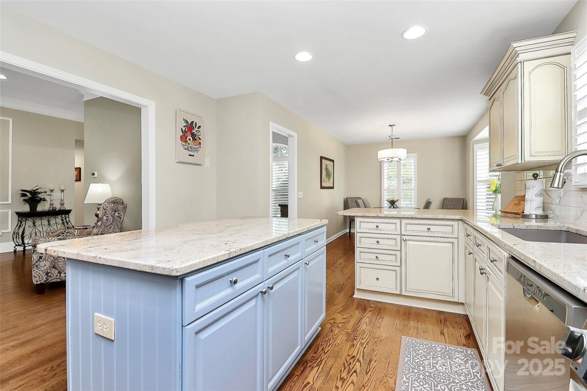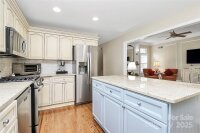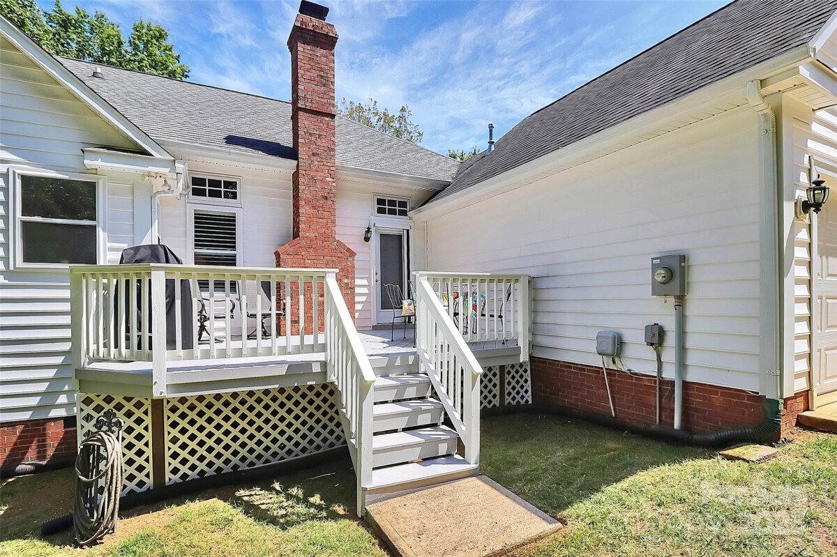 Beautiful ranch home in highly desirable neighborhood of Harbor Cove in Mooresville. Well maintained 3 bedroom home plus office/den located in a waterfront community with water views. Kitchen updated in 2025 with new granite countertops and tile backsplash, granite sink, new gas range, new microwave. Large living space with gas fireplace that opens to the kitchen, along with a cozy office with french doors. Spacious primary bedroom and bathroom, along with two other bedrooms and hall full bath.Newly painted back deck and nice flat backyard. Rear load garage with plenty of driveway parking also. Community features pool and lake beach access. Boat slips may be available to lease or purchase though the HOA.