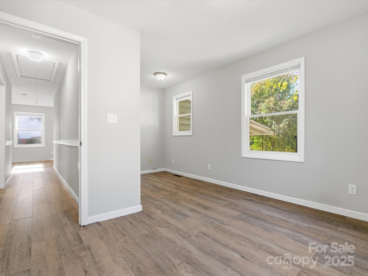 Welcome to 207 Oakdale Street — a charming 1955 home sitting on nearly 1/3 acre in a prime Gastonia location. This property is an excellent opportunity for investors or buyers seeking an affordable home with fantastic potential. Previously a 3-bed, 1-bath layout, the home was thoughtfully renovated to a 2-bed, 2-bath design, featuring updated bathrooms and new LVP flooring throughout. The main den offers a warm and inviting touch with a real wood-burning fireplace accented by white brick, adding to the home’s original character. Major system upgrades include a 2023 HVAC system (central heat/air) and a new whole-house water filtration and softener system, providing peace of mind for future owners. The kitchen is ready for its next chapter and offers the perfect canvas for customization. With some additional paint, trim, and appliances, this house can truly shine. Outside, the private, wooded backyard provides endless possibilities once given attention, especially with areas impacted by overgrown kudzu. Conveniently located with easy access to highways, shopping, dining, and the rapidly growing amenities of Gastonia and only a short drive to the airport this property is ideally positioned for commuters and investors alike. Priced at just $200,000, no HOA, this home is ready to move for buyers seeking value in today’s market or investors looking for rental income or a profitable flip. Don’t miss your chance to bring out the full potential of this charming home!