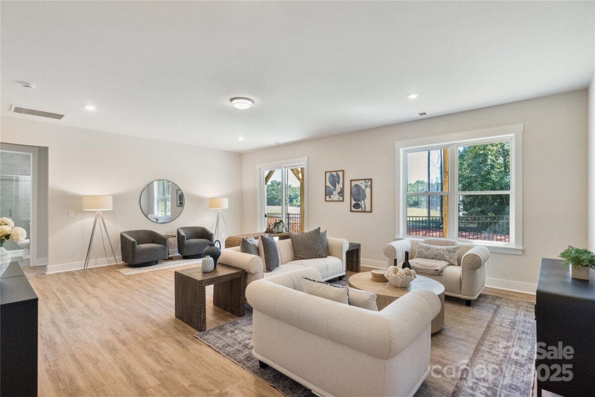 Welcome to this beautifully designed ranch home in one of Fort Mill’s premier 55+ communities, offering sweeping views of the golf course driving range from both the great room and the primary suite. Only one owner must be 55+, providing flexibility for multi-generational living. The open-concept layout features a gourmet kitchen with generous prep space, a cozy gas fireplace, and seamless access to a large covered deck — the perfect setting for morning coffee or evening sunsets overlooking the green. The main level includes a spacious primary suite with golf course views, a guest bedroom, dedicated home office, and convenient laundry room. The fully finished walkout basement expands the living space with a large recreation room, fourth bedroom, additional laundry area, and kitchenette — ideal for a true mother-daughter arrangement or extended guest quarters. A versatile flex room easily accommodates a golf simulator, home gym, media room, or private den. Abundant storage throughout enhances everyday functionality. Situated on a quiet cul-de-sac, the home also offers a two-car garage with pull-down attic access, professionally landscaped yard with irrigation, and HOA-covered lawn maintenance for easy, low-maintenance living. Enjoy close proximity to downtown Fort Mill, dining, shopping, the golf club, and Walter Elisha Park — all within a peaceful golf course setting. A rare opportunity to enjoy space, flexibility, and views in a sought-after active adult community.