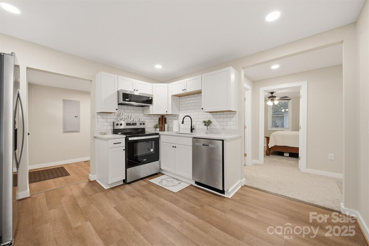 All this home needs is you! Welcome to 20 Archer Street, Granite Falls, NC. The little things that make a house feel like home - a wide front porch, an actual laundry room with a washer and dryer, a kitchen pantry, walk in closet in the primary bedroom, open shelving in the bathroom, not to mention new flooring, paint, light fixtures, kitchen appliances, doors - all these things make home buying feel good. Granite Falls is a small town located in the foothills of the Blue Ridge Mountains. Halfway between two larger, growing cities - Hickory and Lenoir. Archer Street is centrally located between Hwy 321 and downtown Granite Falls. Quick to everything! New construction going on in the same neighborhood at a much higher price point. I invite you to come take a look. Don't have a lender? Happy to recommend a local lender to you! You could celebrate the holidays in your new place.