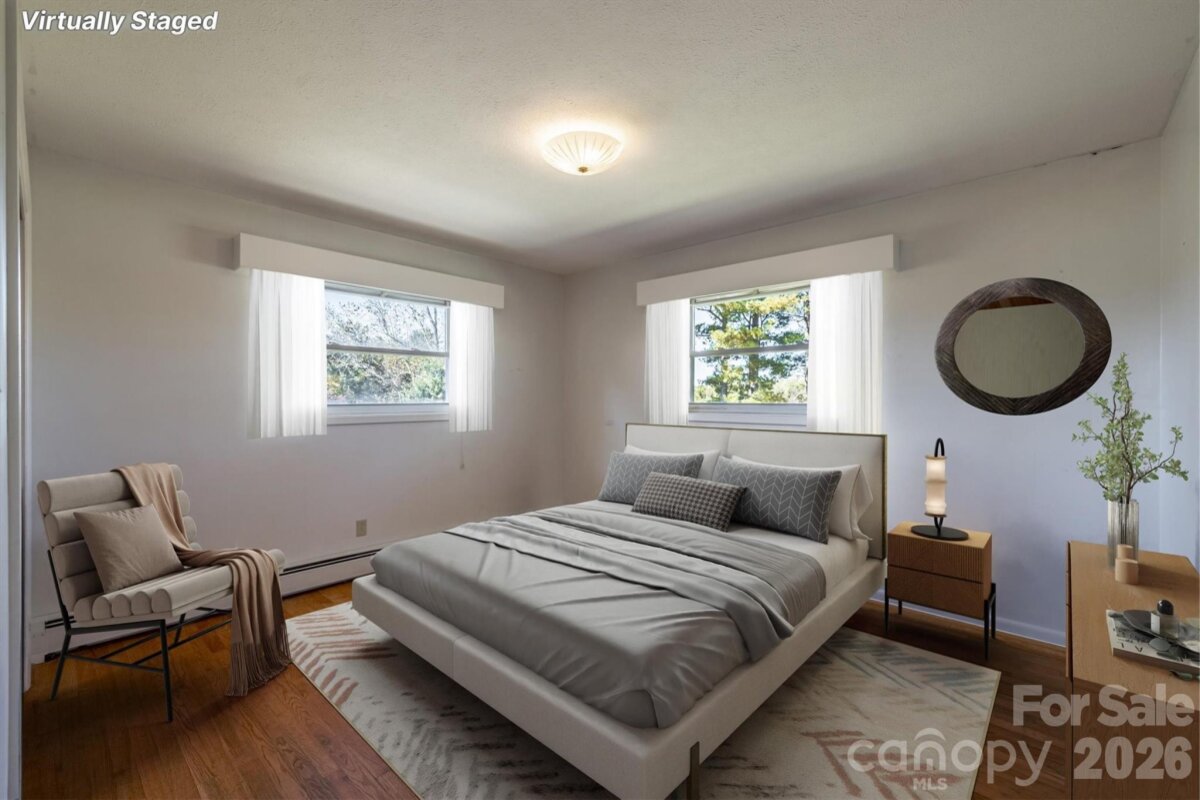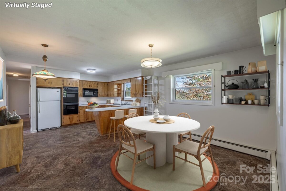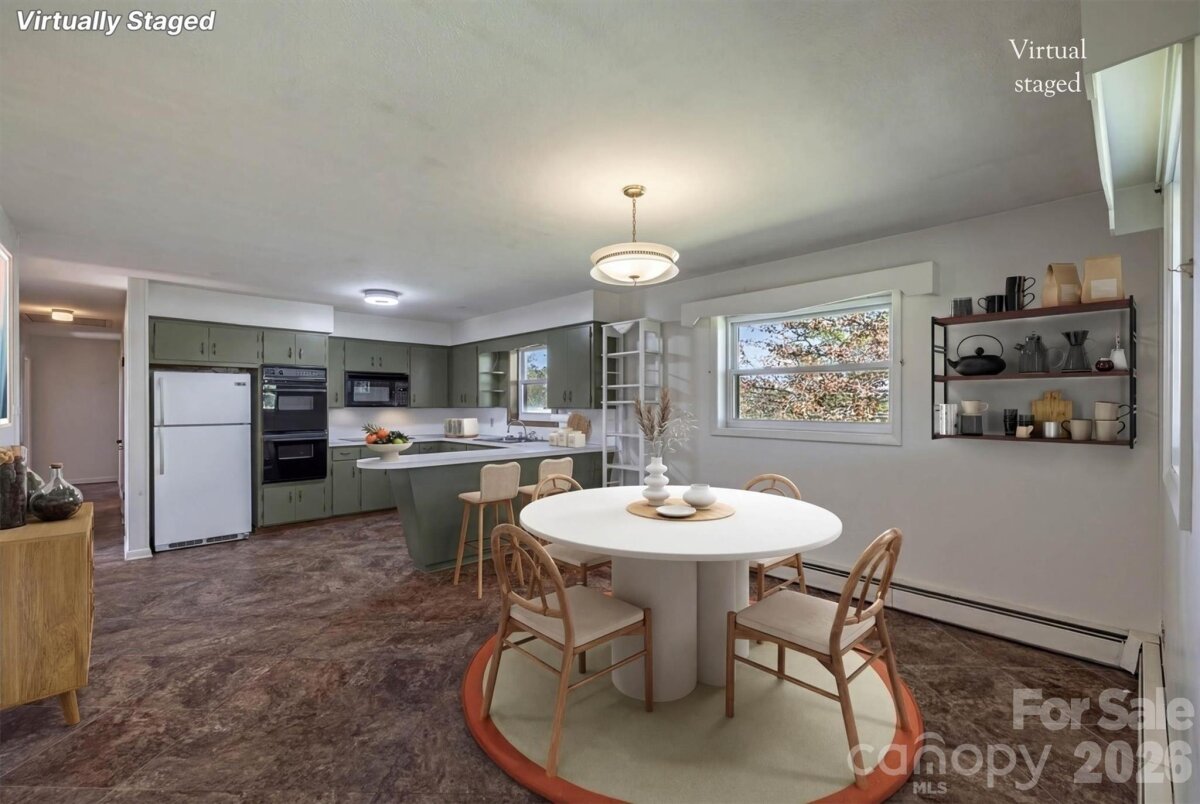 Enjoy sweeping mountain views right from your front porch or living room window—an ideal backdrop for peaceful living. Inside, you'll find a very nice layout with a cozy living room, plenty of natural light throughout and spacious bedrooms. This home offers beautiful hardwood flooring in the living room, hall and bedrooms. The large living room has a cozy fireplace and a huge window to enjoy those beautiful mountain views and lots of natural light. The kitchen and dining area are open and perfect for entertaining. 3 bedrooms on the main level are spacious with ample closet space in each room. The basement features a laundry area and functioning bathroom and still has lots of space for possible additional rooms, workshop or storage. The all-brick exterior and metal roof not only adds classic charm but also provides long-lasting, low-maintenance durability. Other exterior features are a private covered patio and nice large flat backyard that would be great for barbeques.