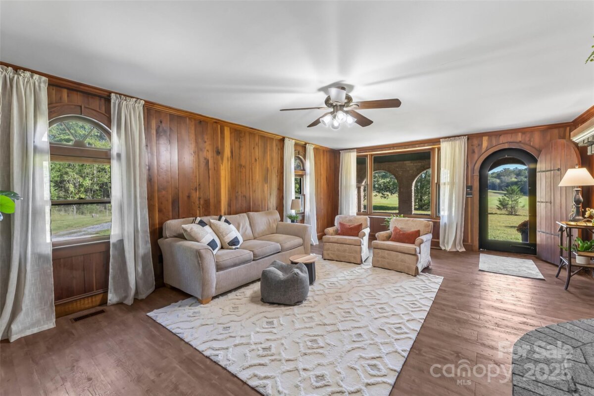 OFFER DEADLINE MONDAY, 10/6 at 1 PM. Tucked away on 8.61 peaceful acres in Newton, this full-brick home welcomes you with arched doors, opening into a spacious living room with real walnut-paneled walls, a gas-log fireplace, and a sunny window bench. The vintage kitchen, complete with unused appliances and ample storage, flows seamlessly into a dining area featuring corner cabinetry and access to a covered carport seating area. Two bedrooms are found on the main level, including a spacious primary suite with cedar-lined closets and a double vanity primary bathroom, plus a second full bath with vintage charm. Downstairs, the finished basement offers a second living space, complete with a fireplace, full kitchen with additional storage space, laundry, full bath, and a bonus room that can serve as an extra bedroom or office- perfect for guests or extended living. What once was an attached garage has been made into additional storage space. Outside, a massive detached garage with attic and workshop space provides room for projects, cars, or storage. With a long private drive, fenced acreage, and quiet wooded views, this property is so much more than a home. Please do not drive onto the property without scheduling a showing.