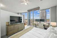 Welcome to elevated city living in this high-rise, luxury condo in the heart of Uptown Charlotte. This modern 1-bedroom, 1-bathroom residence spans 776 square feet with an open floorplan and floor-to-ceiling windows offering panoramic views of the Charlotte city skyline. Step inside to find beautiful hardwood floors and a sleek kitchen with granite countertops and stainless steel appliances. This unit offers a private balcony, dedicated storage unit, and deeded parking space within the secure/gated community entrance. Residence of this premier residential building enjoy luxurious amenities, including 24/7 Concierge Service, a heated rooftop pool, state-of-the-art fitness center, sky lounge with indoor/outdoor entertaining space, and a business center for professional needs. Enjoy the ease of 24-hour package retrieval featuring Amazon Lockers. Savor city life only steps away from dining, nightlife, sporting events, live music venues, shopping and more!