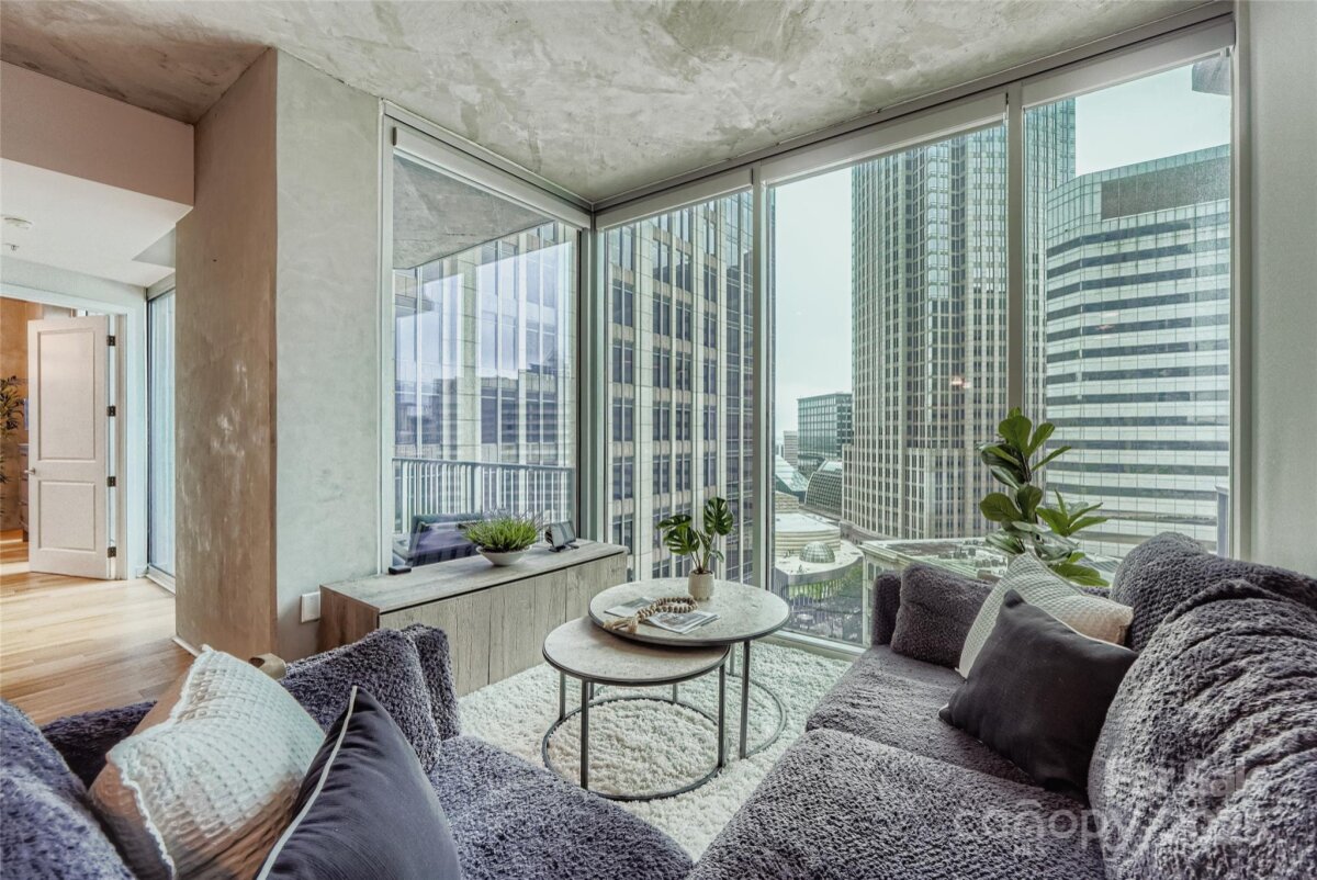 Welcome to your dream urban retreat in Avenue Condominiums, Uptown Charlotte! This stunning 2- bedroom, 2-bath condo offers breathtaking views of the city skyline from its 15th-floor location. The primary bedroom offers a fully renovated en-suite bath featuring a large walk-in tiled shower and contemporary dual vanities. Floor-to-ceiling windows offer picturesque views of the city, automated blinds and a custom built-in closet system complete the primary suite. New barn door adds charm to the guest suite. Renovated second en-suite bath boasts a stand-alone deep soaking tub. Enjoy an open-concept layout, sleek kitchen with stainless steel appliances including refrigerator. Washer/ Dryer also convey. Private balcony with great views! Avenue Condominiums offers luxurious amenities including a rooftop heated saltwater pool, fitness center and concierge service. Immerse yourself in the vibrant Uptown lifestyle with nearby restaurants, shops and cultural attractions all only steps away. This condo includes 2 deeded large parking spaces in the garage.